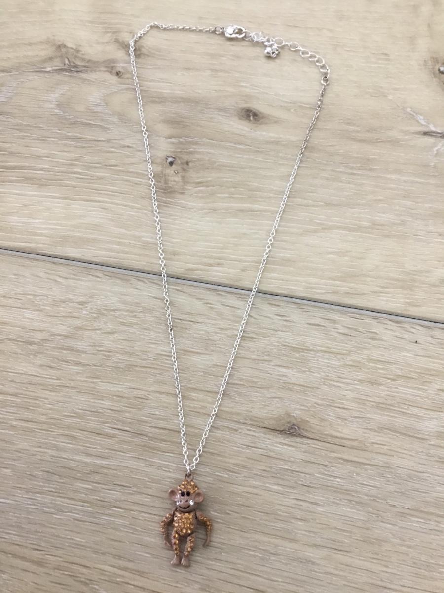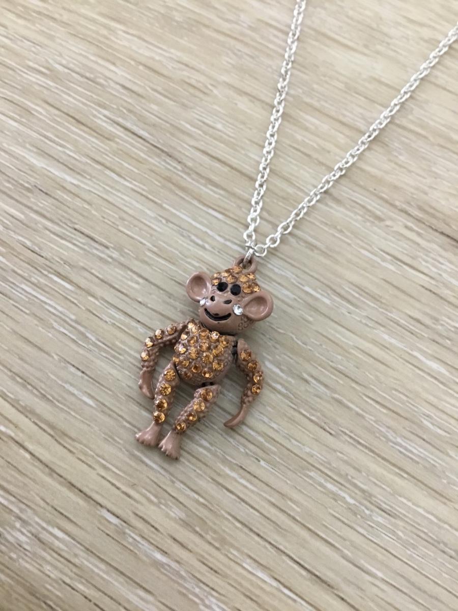 Silver tone monkey charm necklace