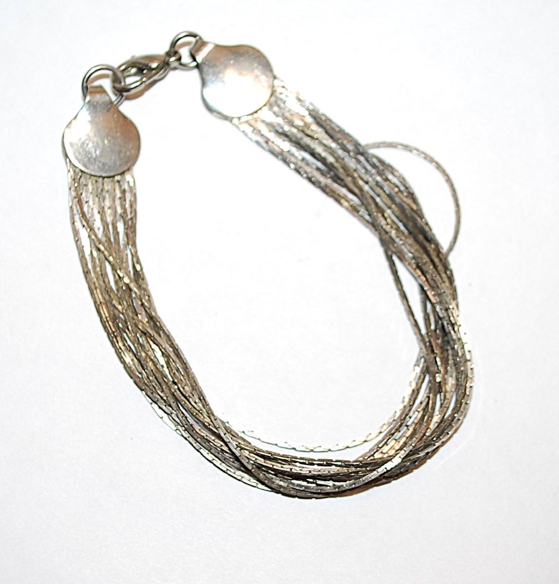 Silver Tone Multi-STRAND BRACELET (3" Opening) with 12 Flat Link Strands with Caps and Lobster Clasp