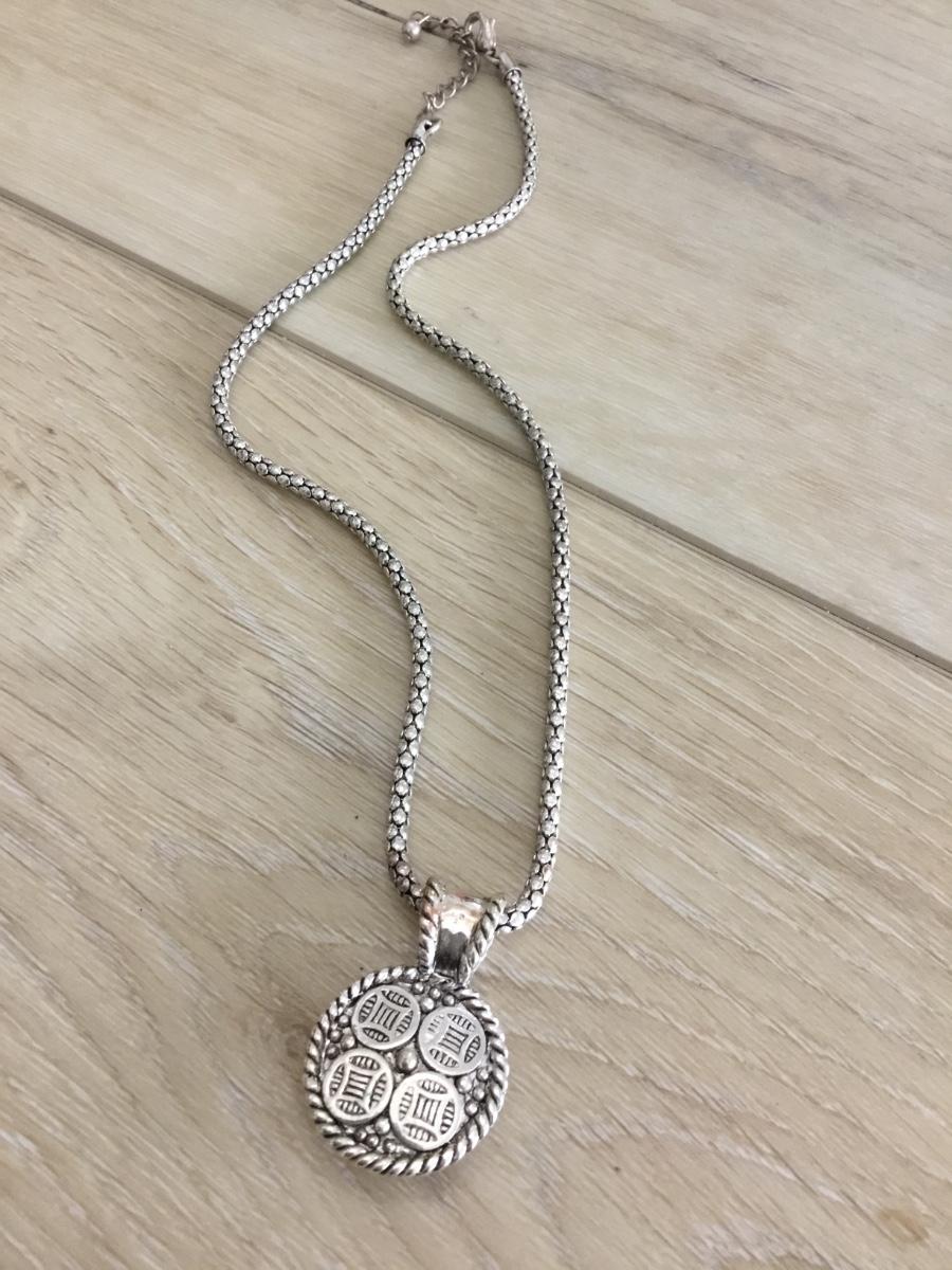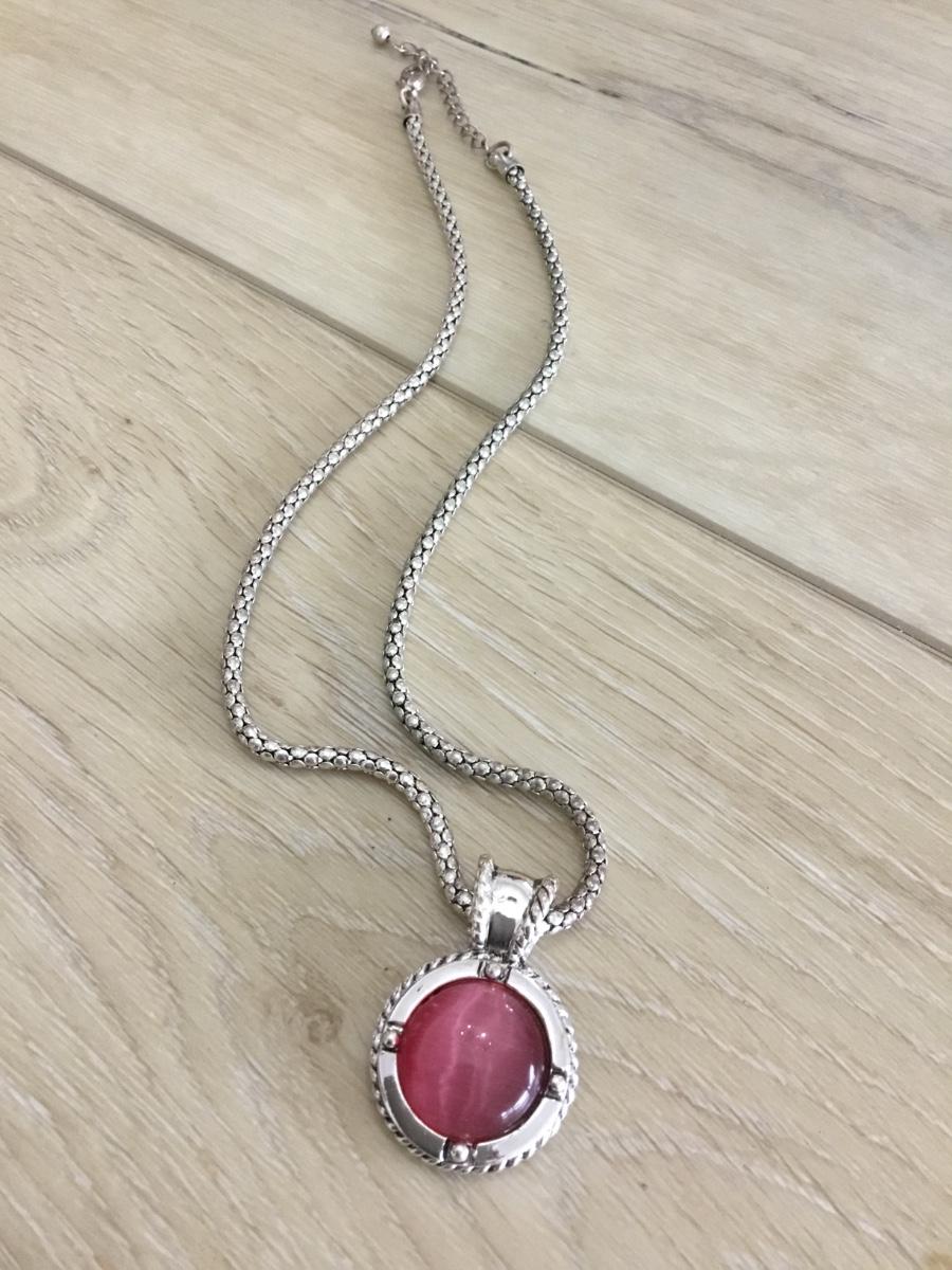 Silver tone necklace with a gemstone pendant