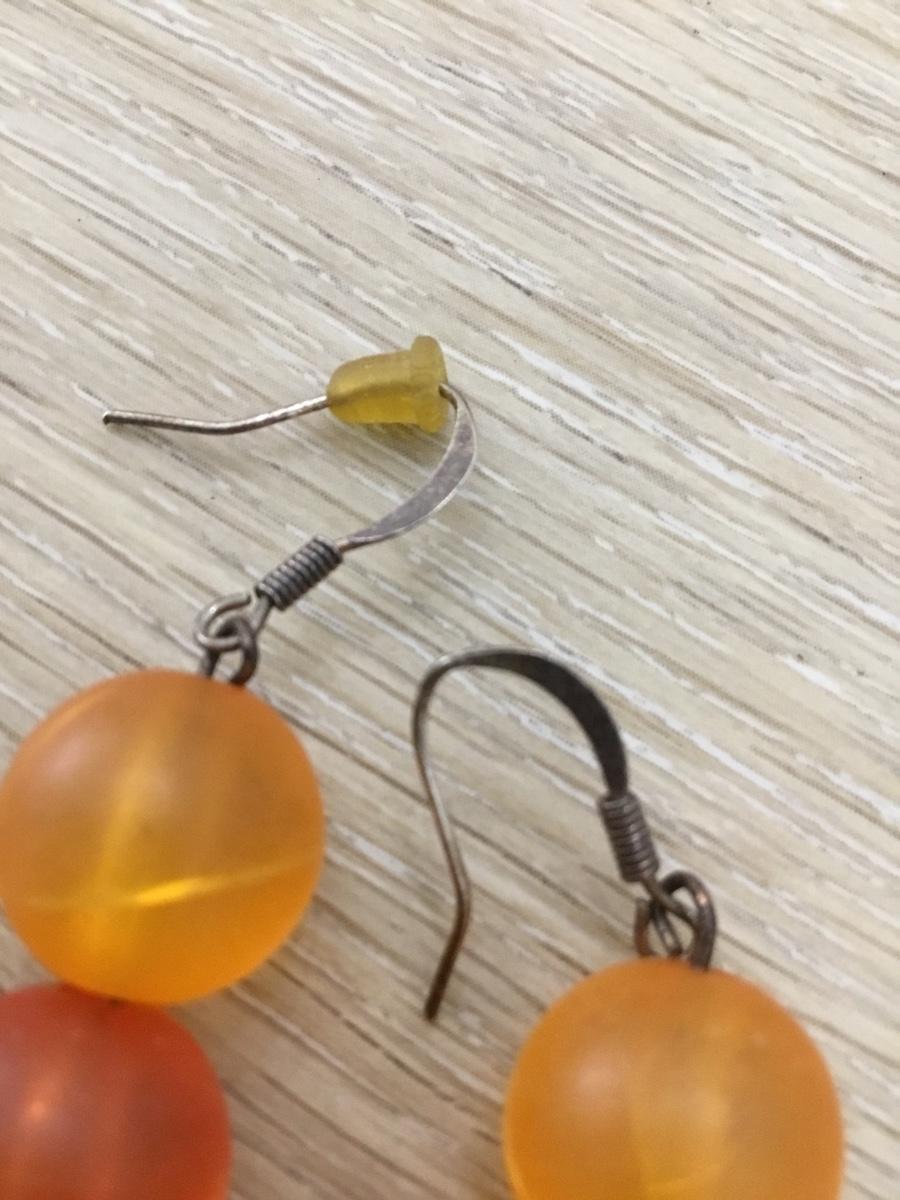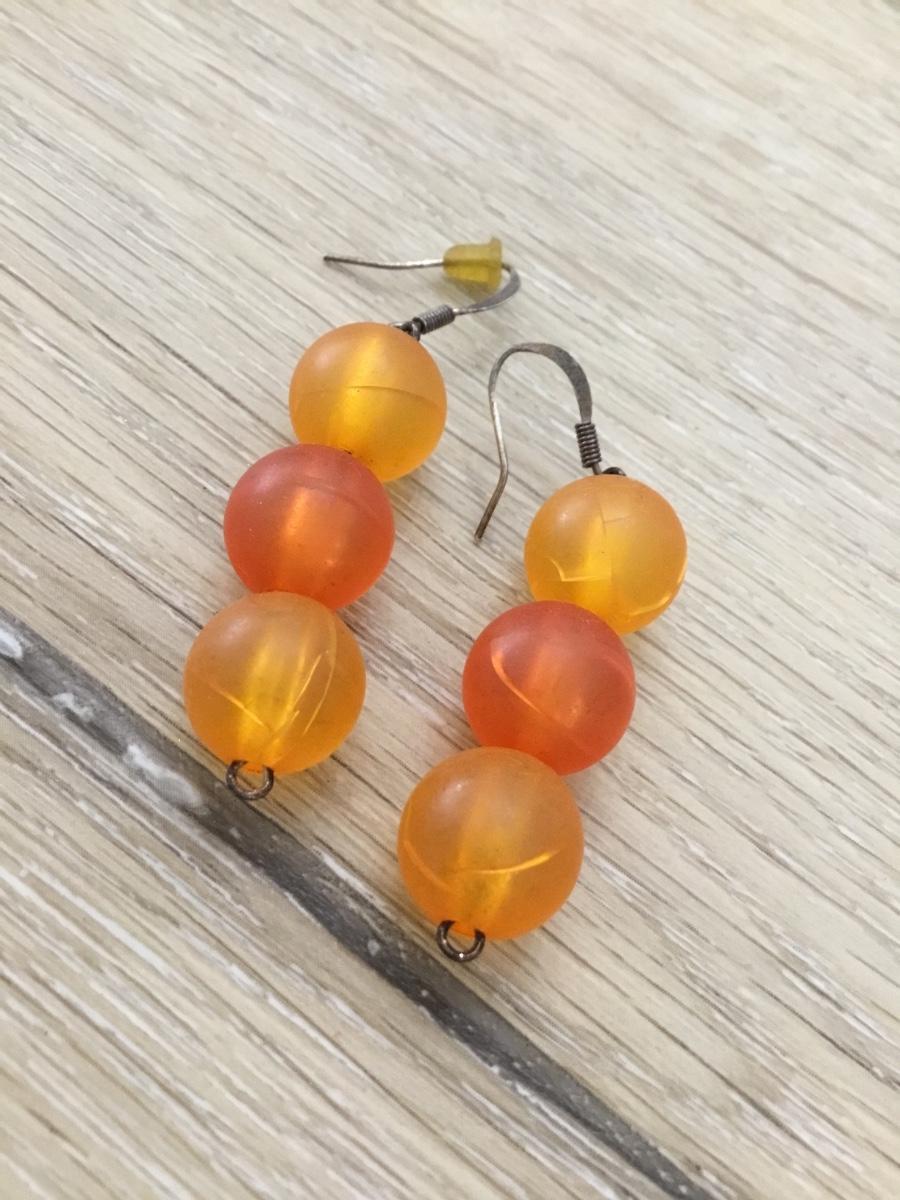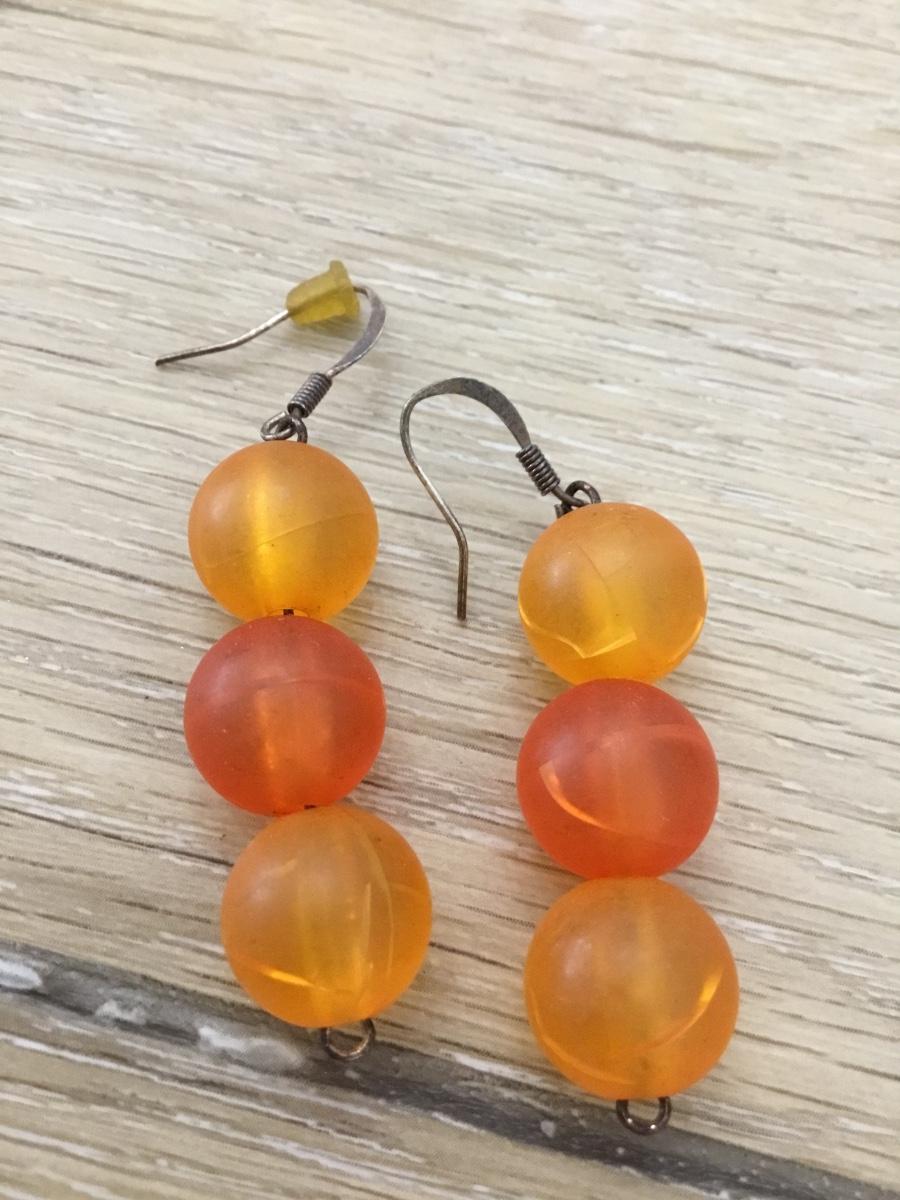 Silver tone orange beaded earrings