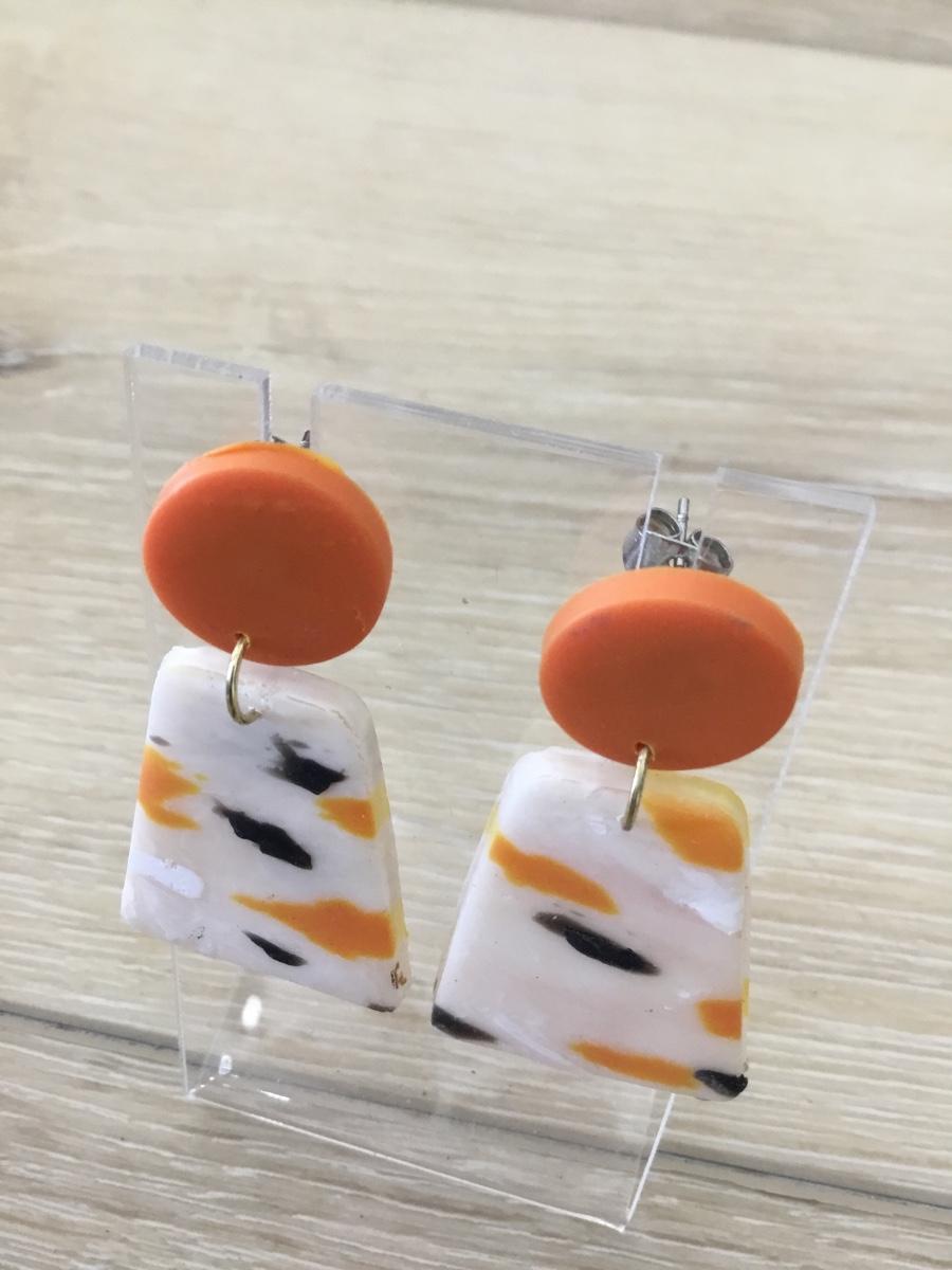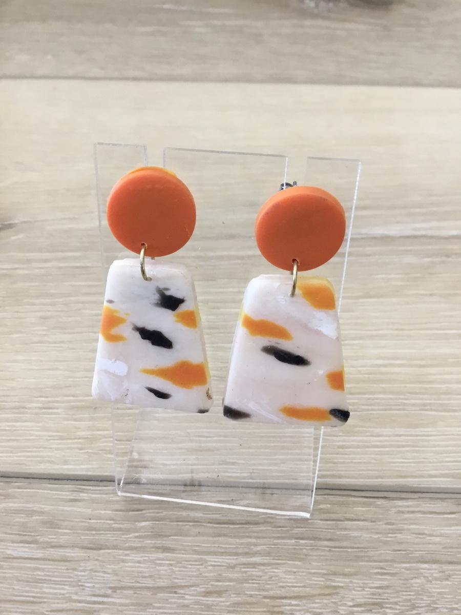 Silver tone orange earrings