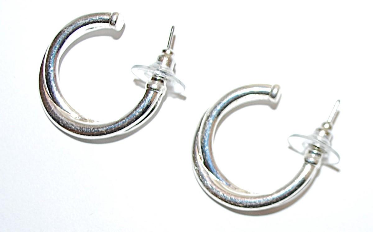 Silver Tone Overlapping ¾ Circle EARRINGS with Stud Post Clasp