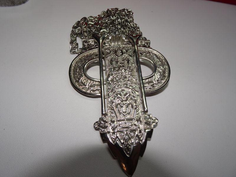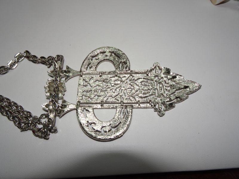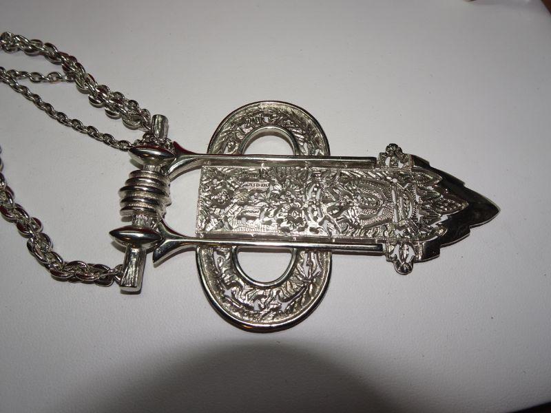 Silver Tone Over-sized Gothic Style Pendant Necklace, Statement Jewelry