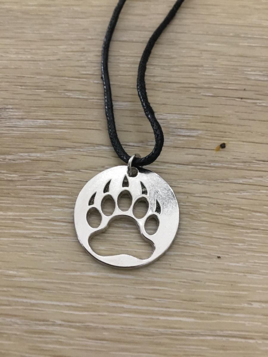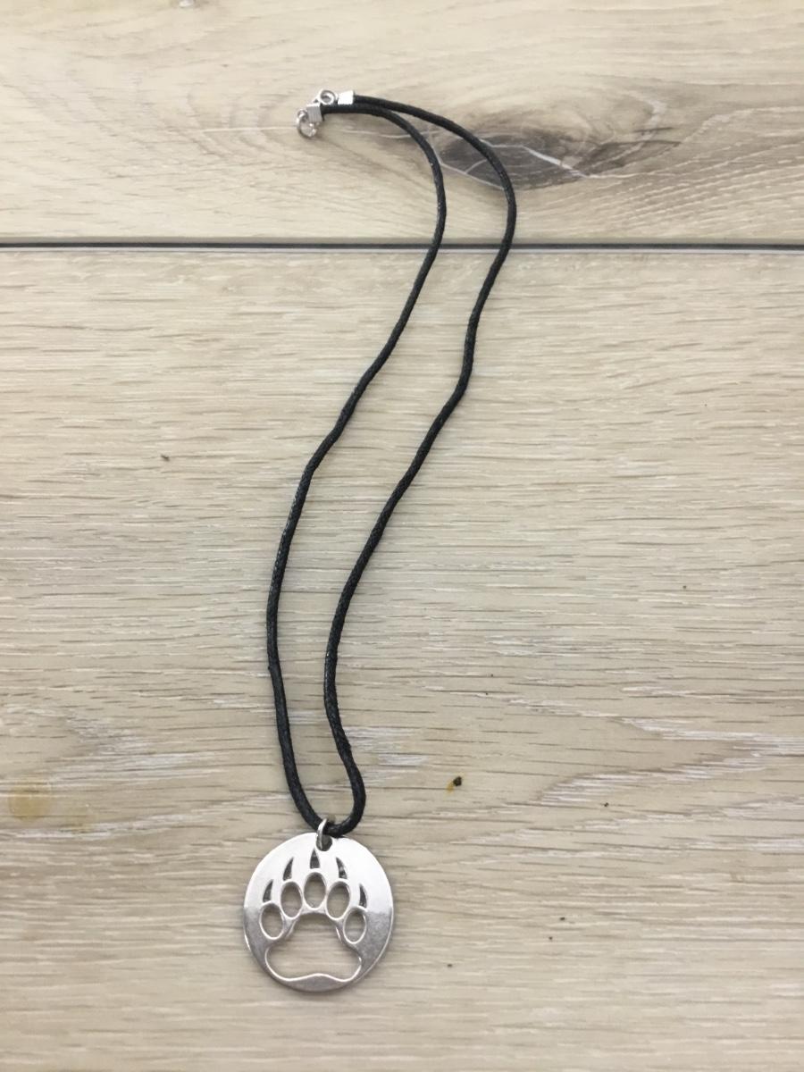 Silver tone paw charm necklace