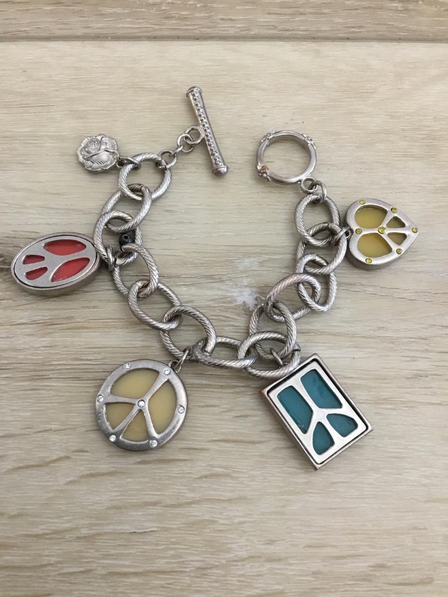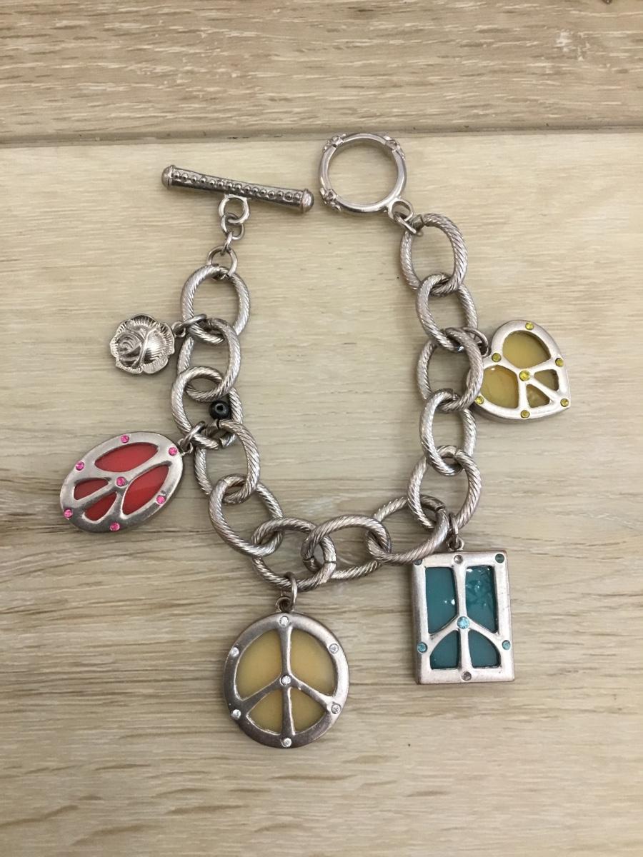 Silver tone peace, sign, toggle bracelet