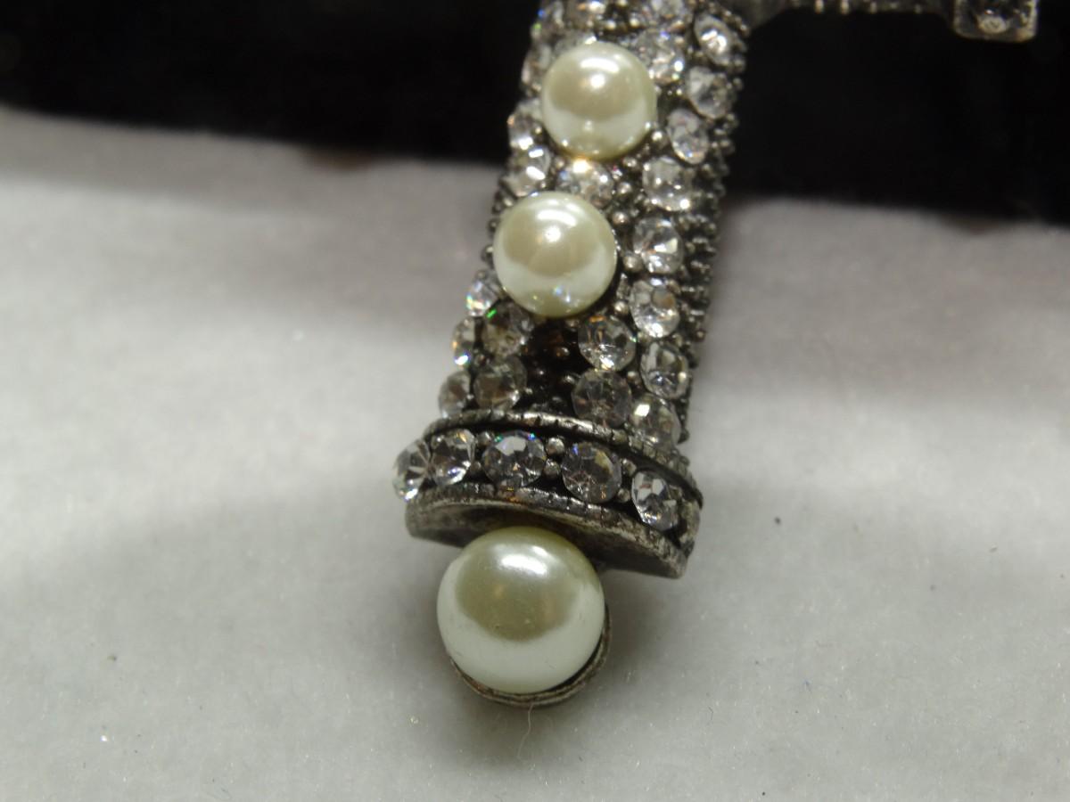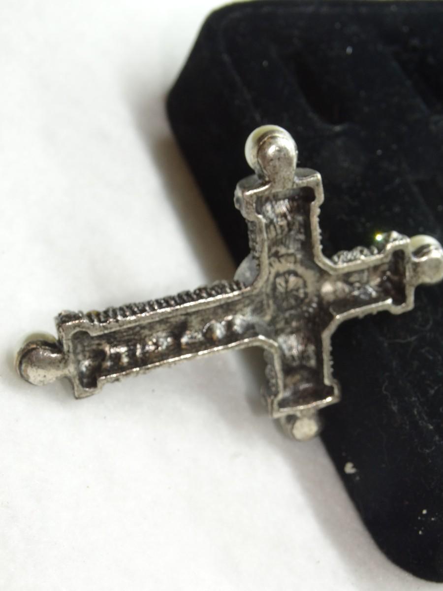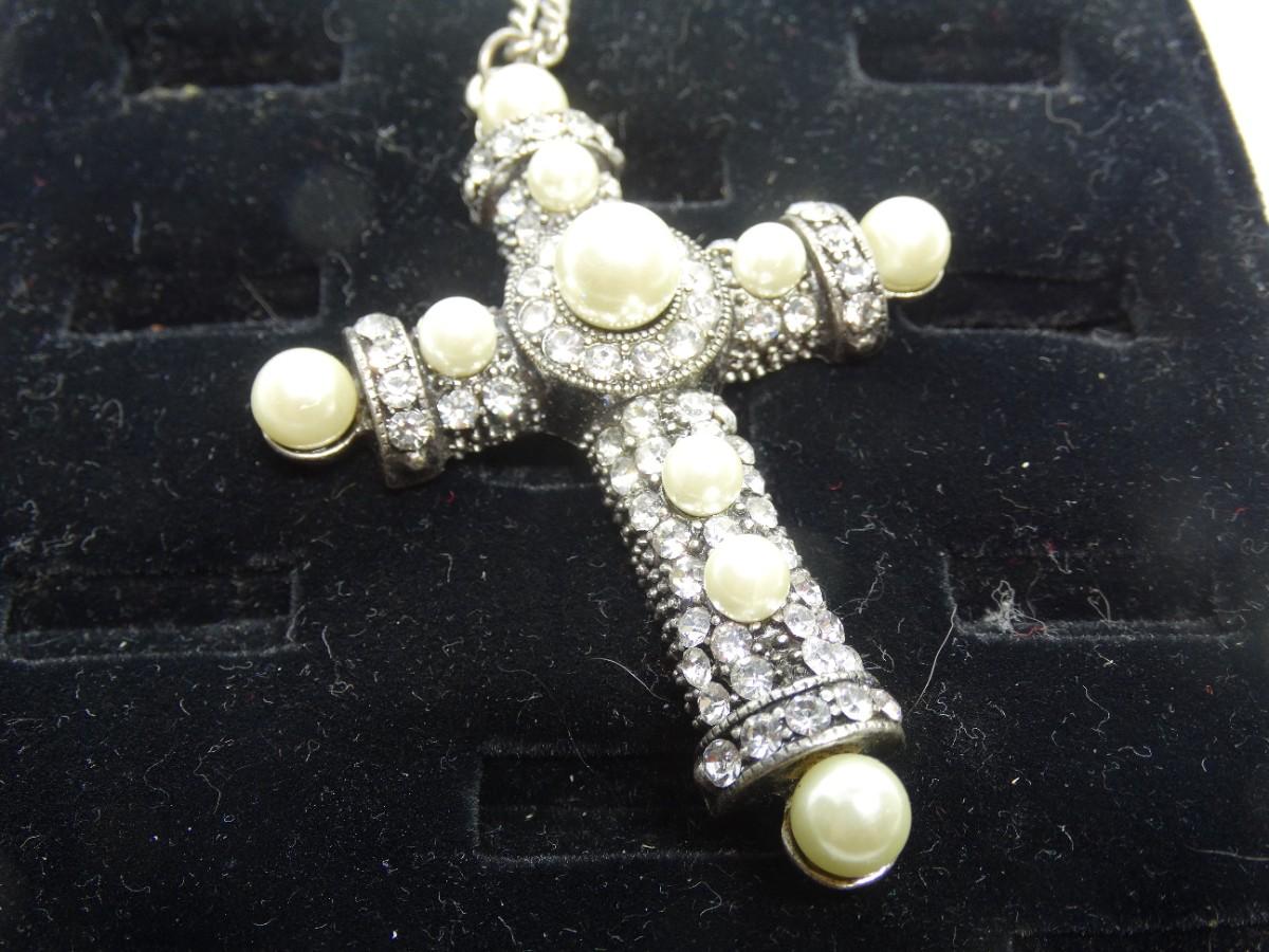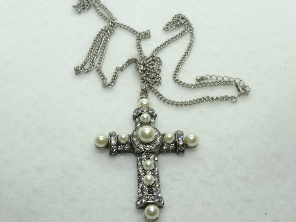 Silver Tone Pearls & Rhinestone Cross Pendant, Beautiful!
