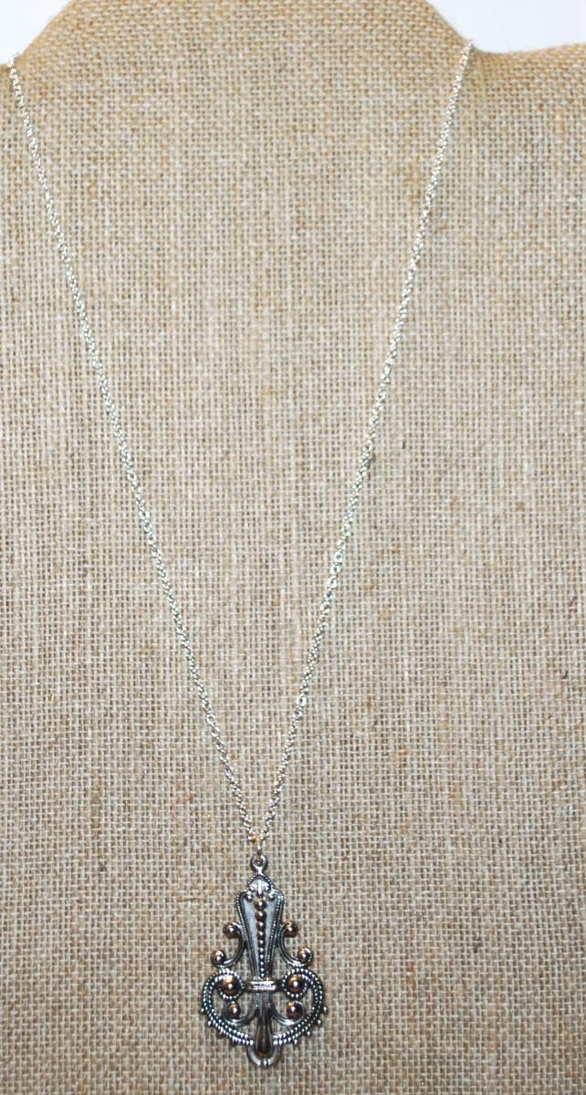 Silver Tone PENDANT (1¾" x 1") on a Silver Tone Necklace Chain 18" L
