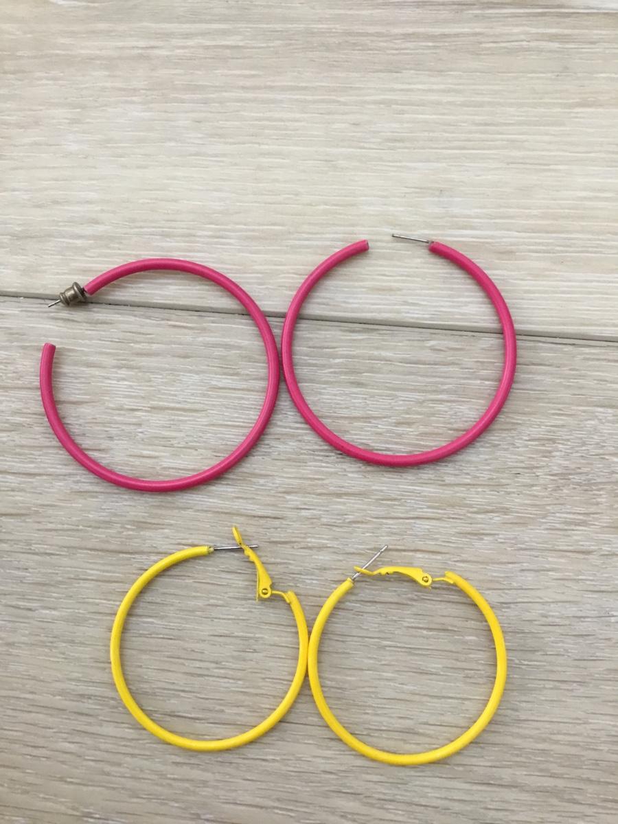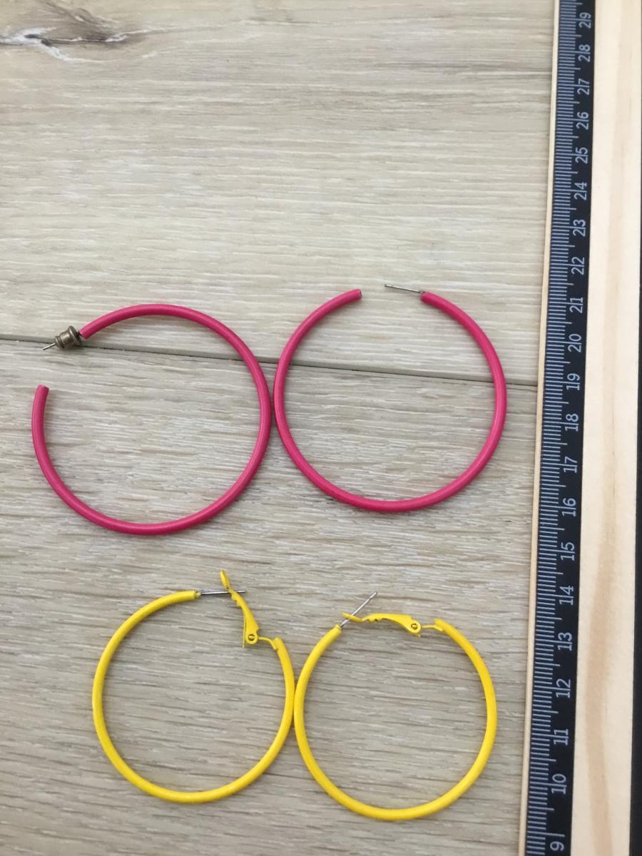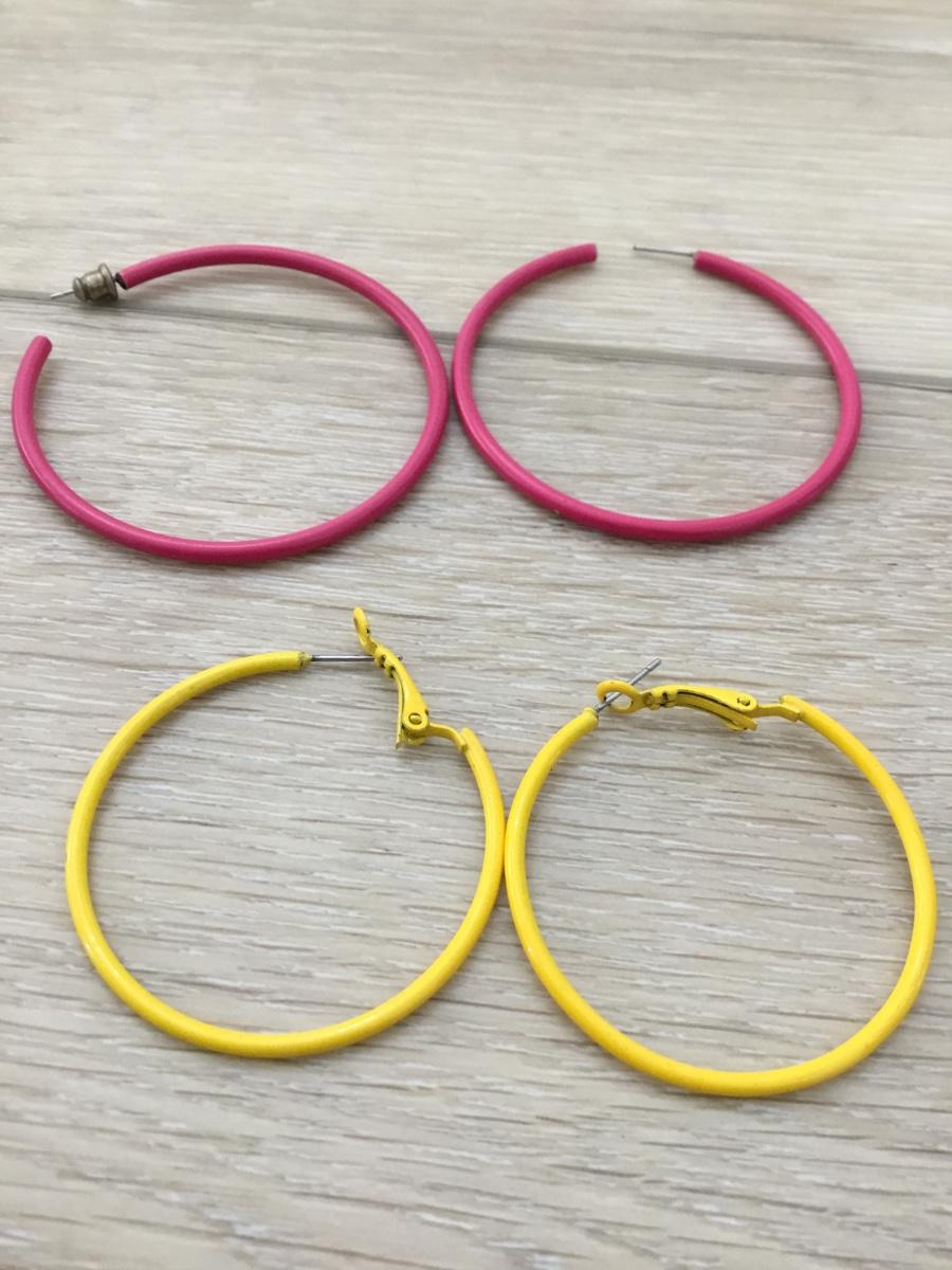 Silver tone pink and yellow hoop earrings
