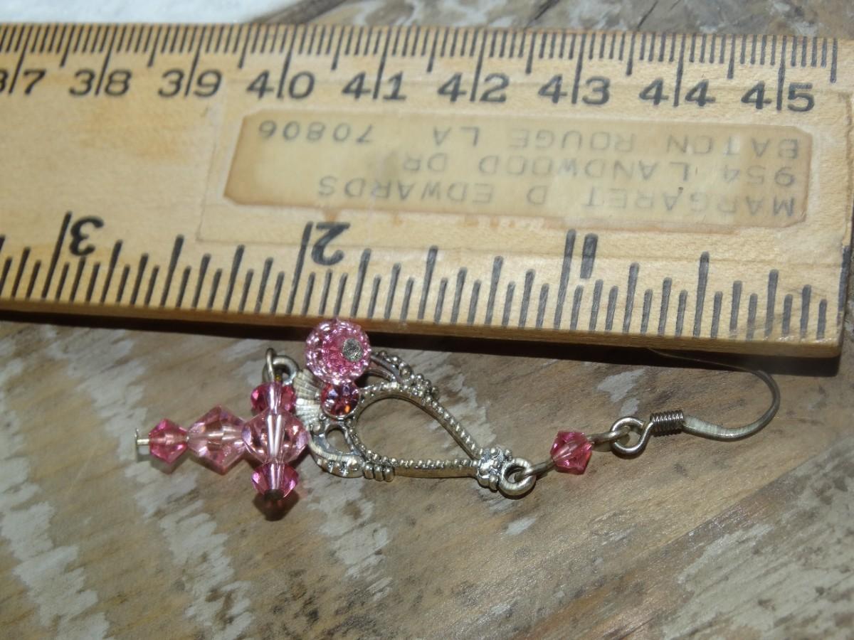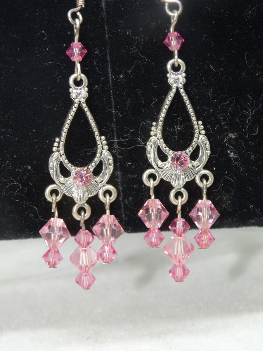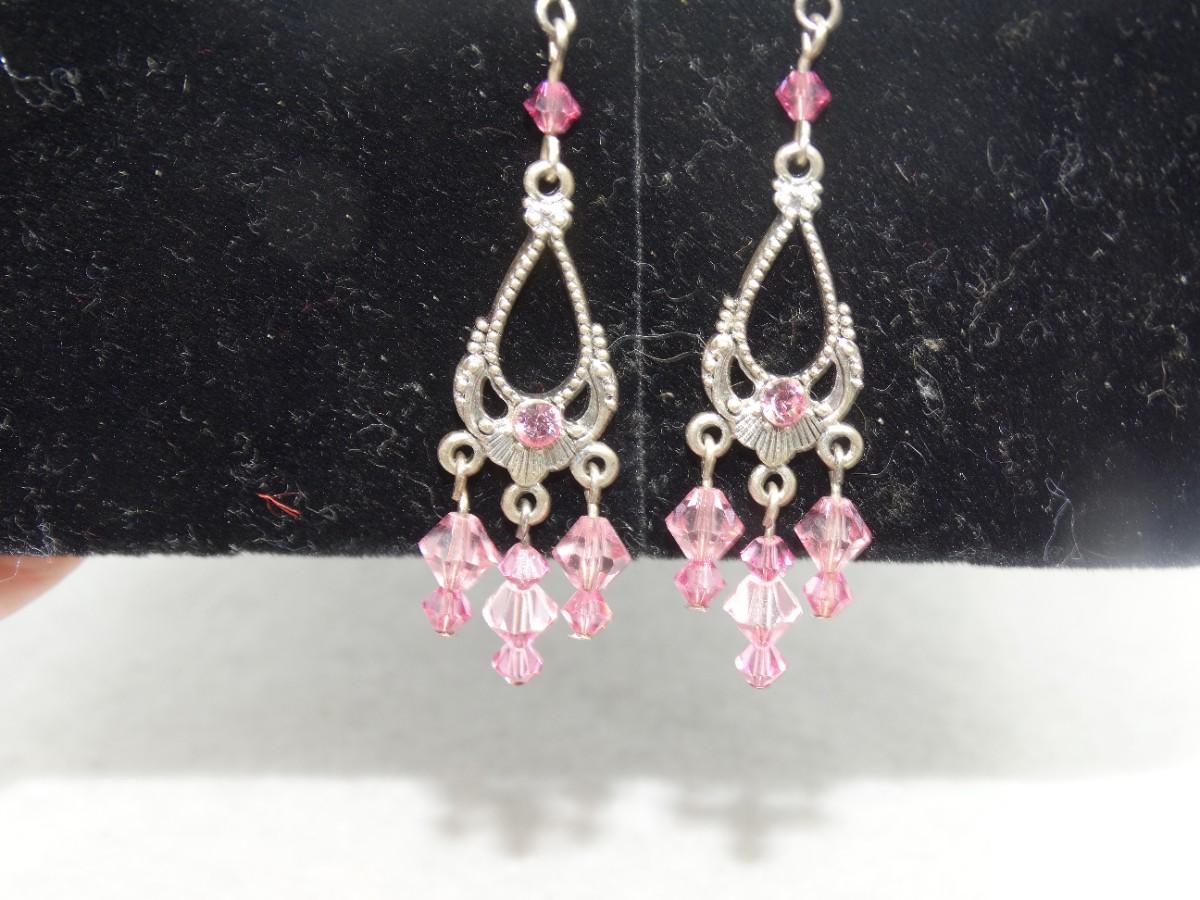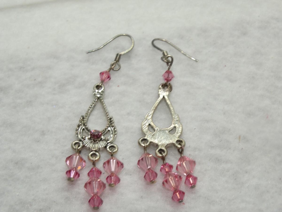 Silver Tone Pink Chandelier Drop Dangle Earrings, Victorian Style