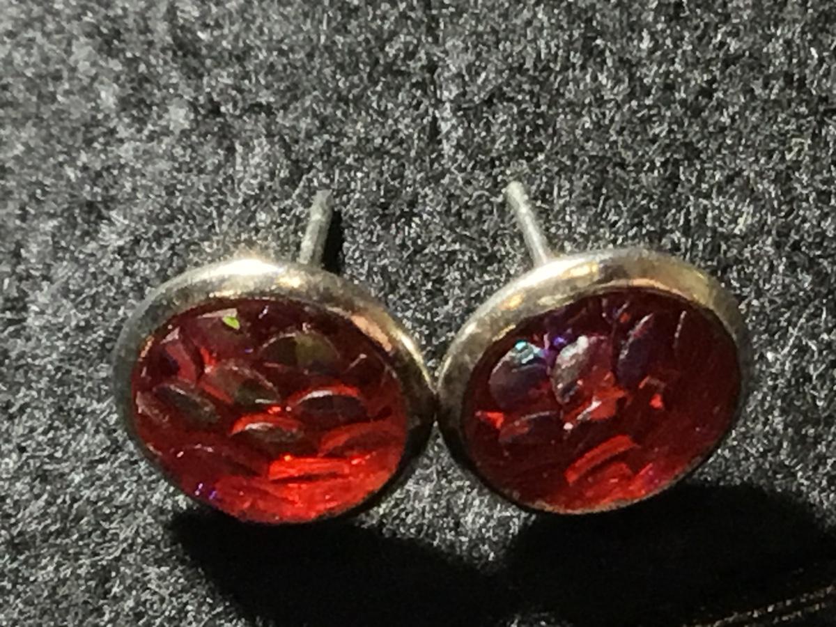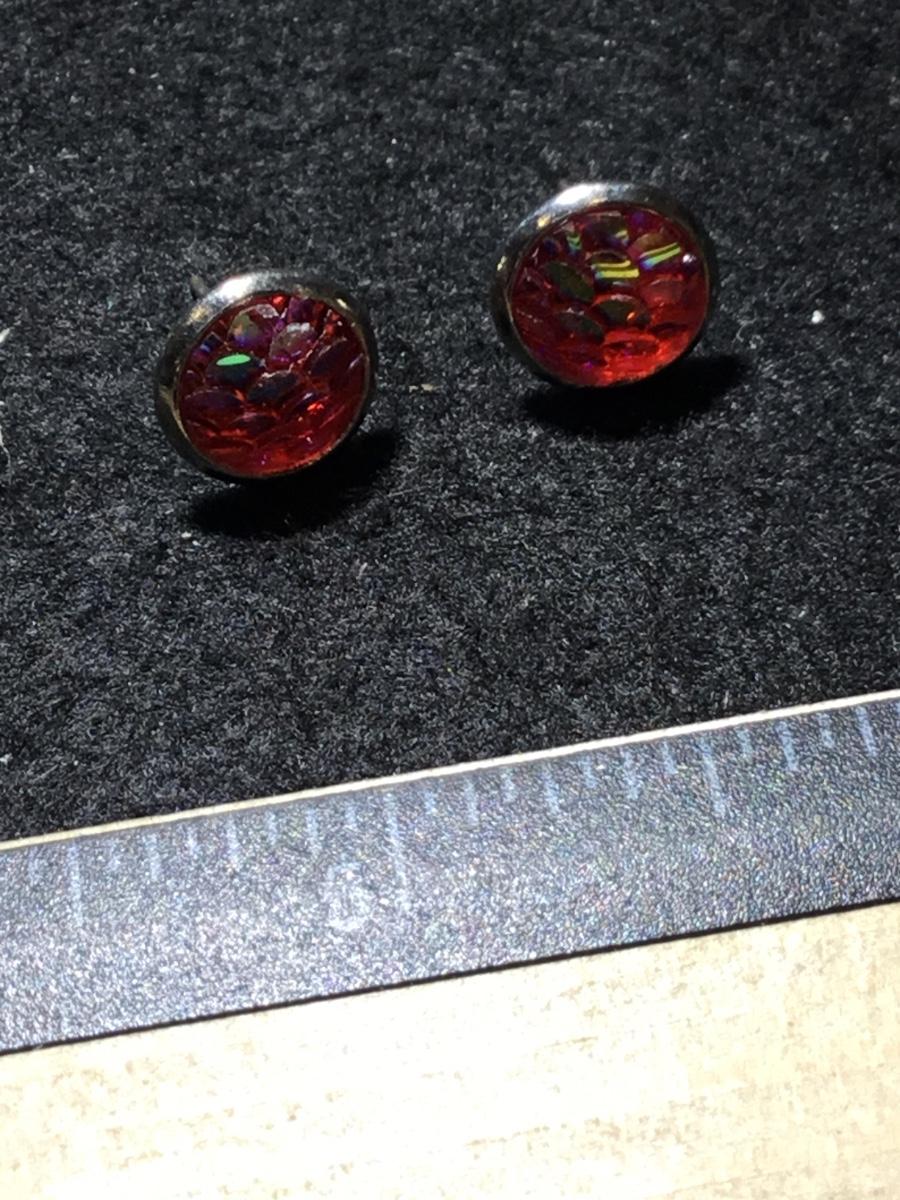 Silver tone pink fish scales fashion stud earrings