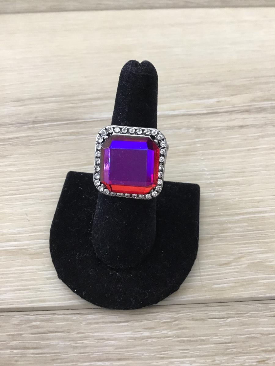 Silver tone pink gem adjustable fashion ring