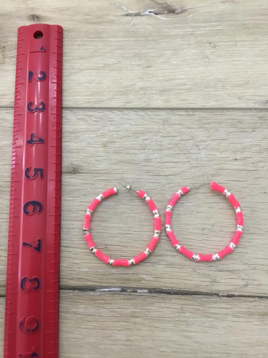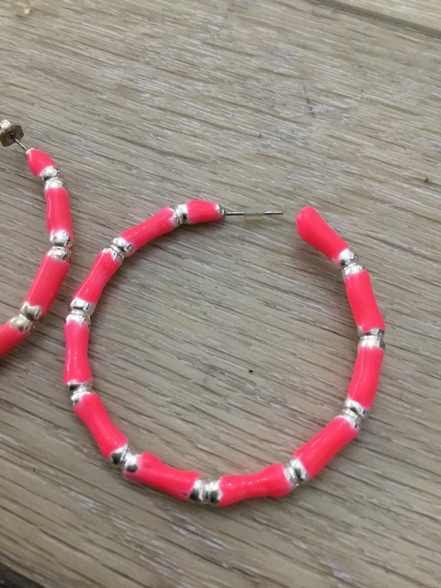 Silver tone pink hoop earrings