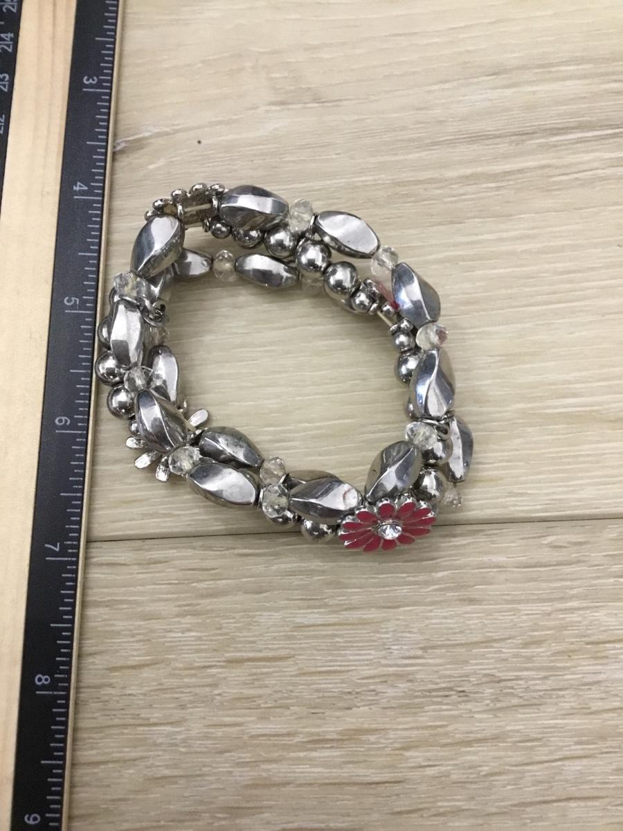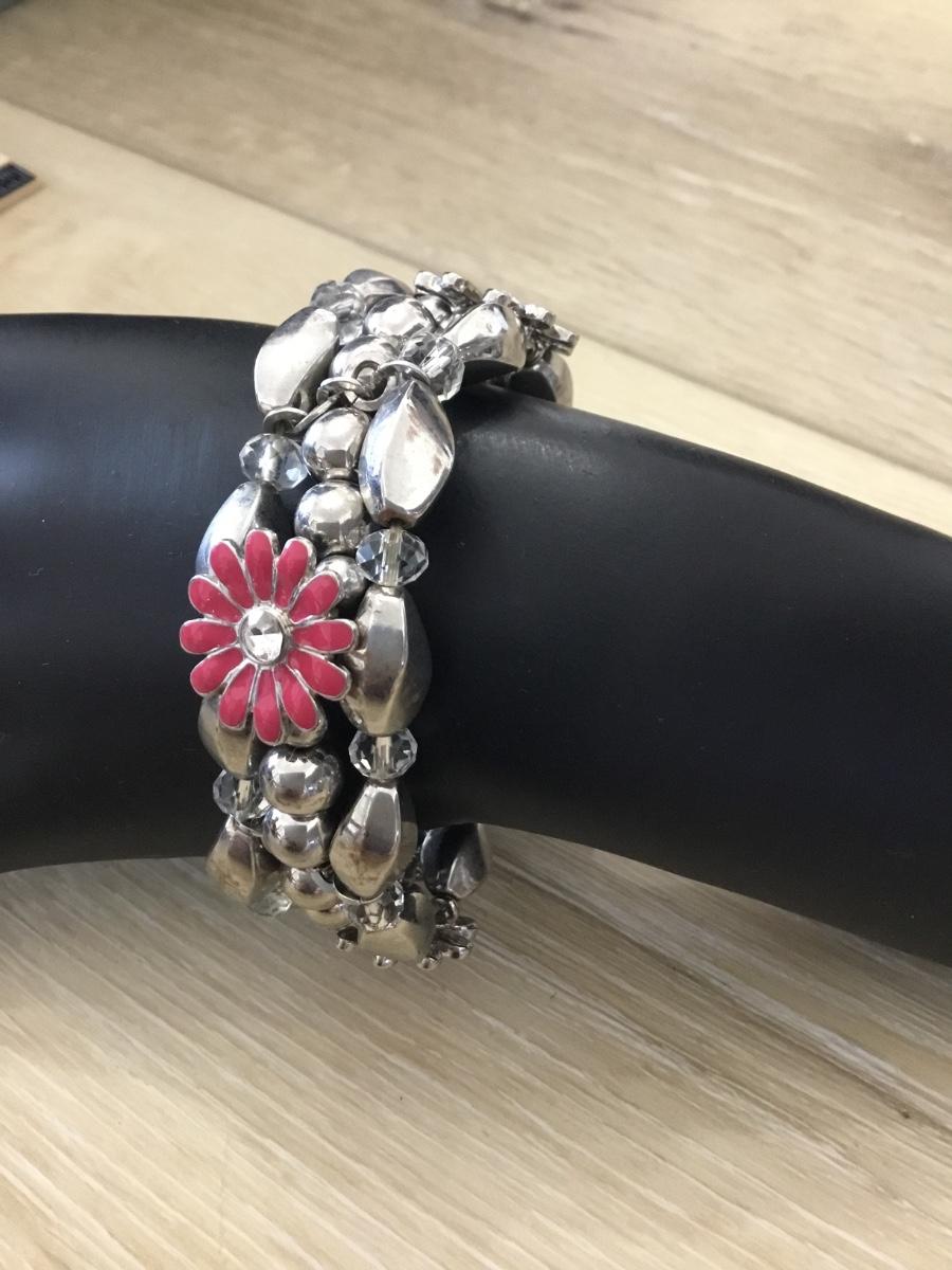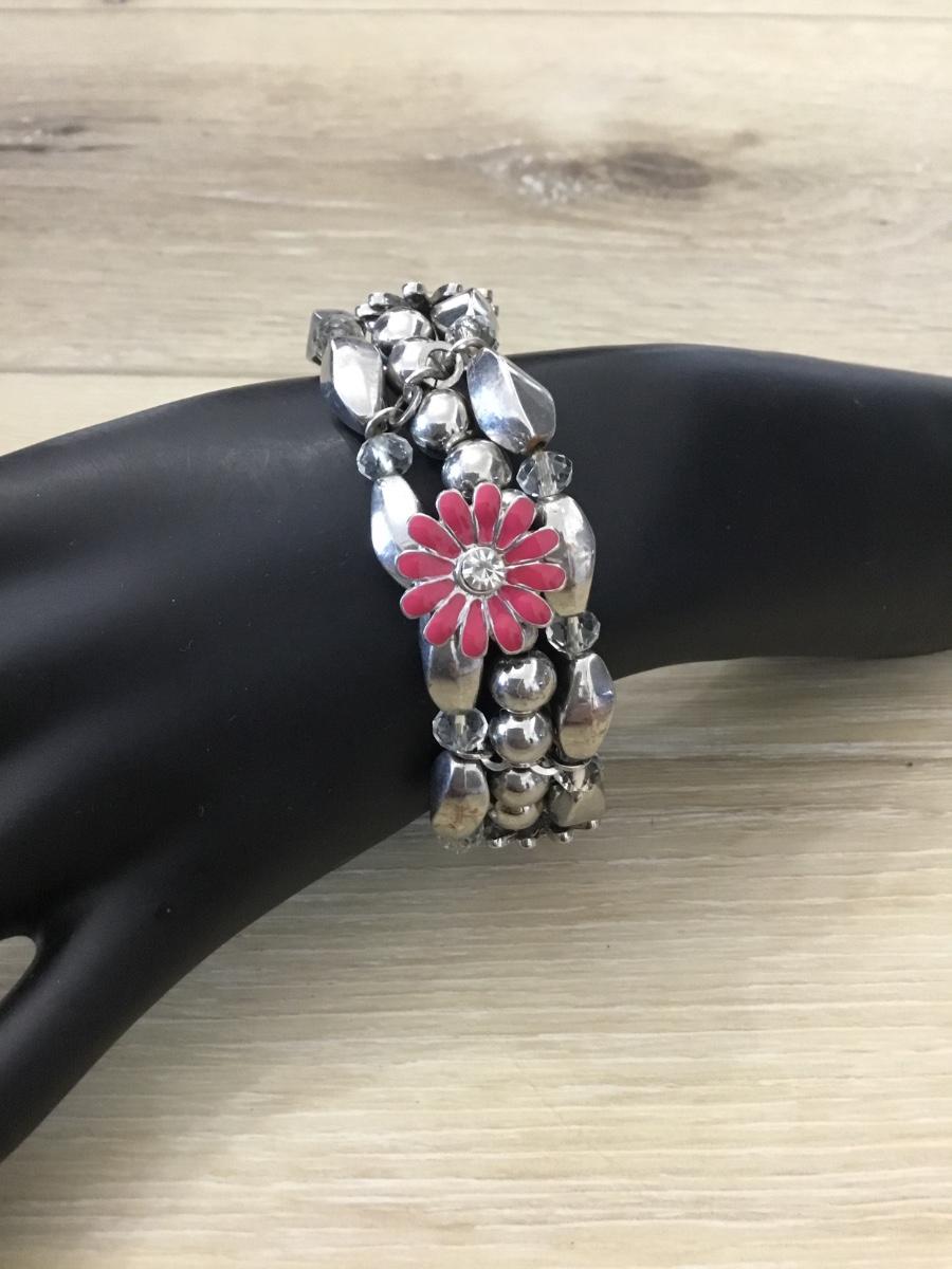 Silver tone pink stretchy bracelet