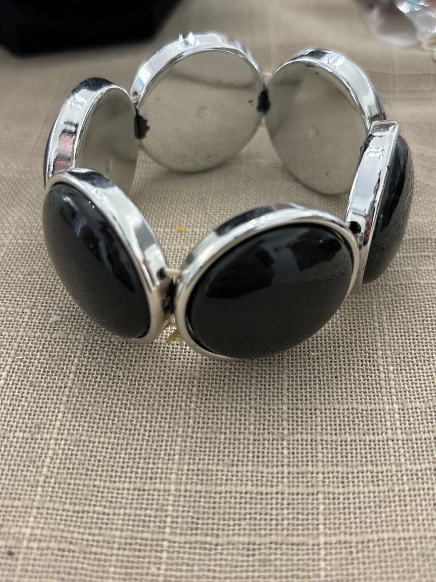 Silver tone plastic black stretchy bracelet