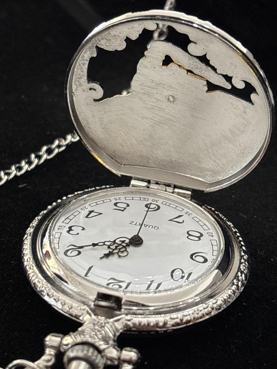 Silver tone pocket watch Chain Necklace Watch for Collection