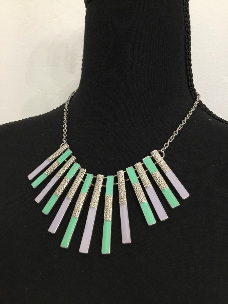 Silver tone purple green fashion necklace