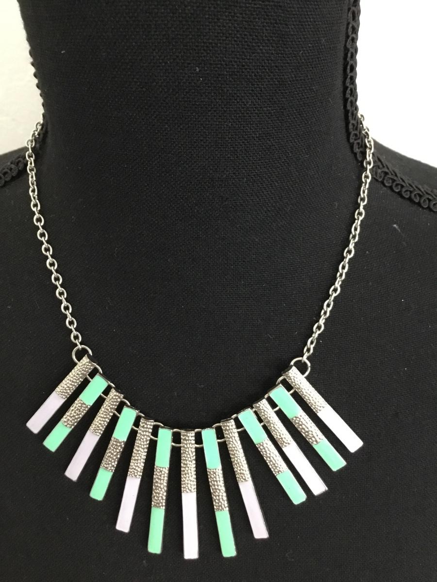 Silver tone purple green fashion necklace