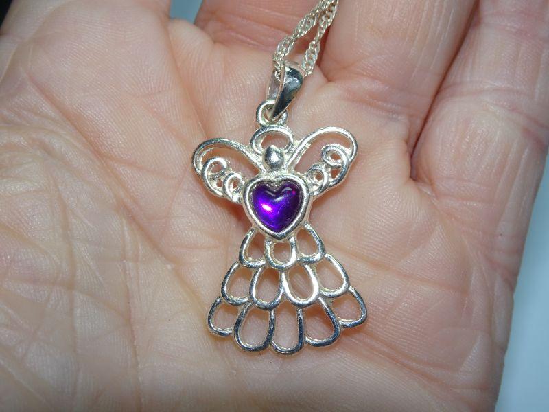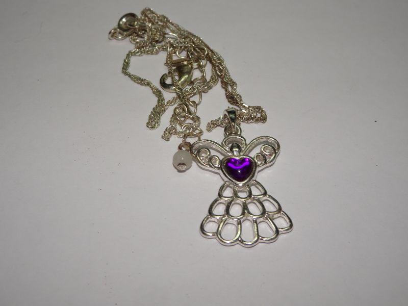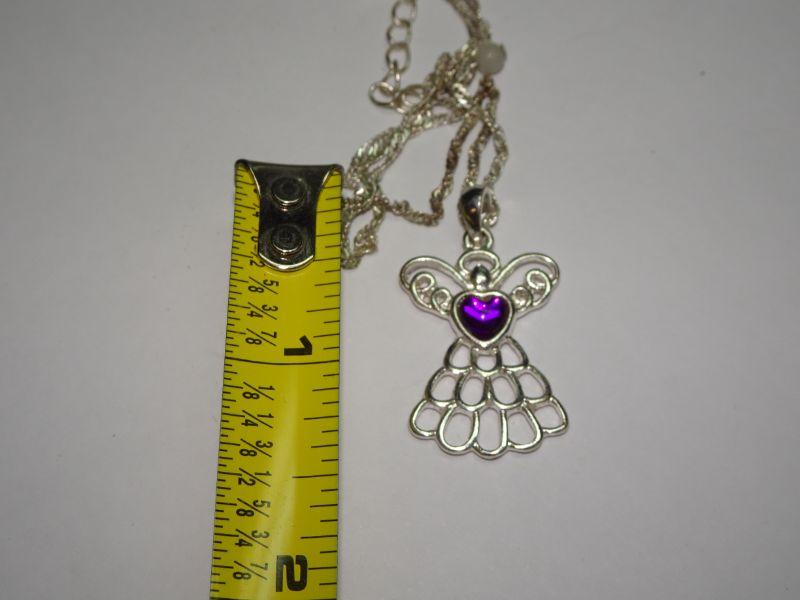 Silver Tone Purple Stone Angel Pendant Necklace, Child's