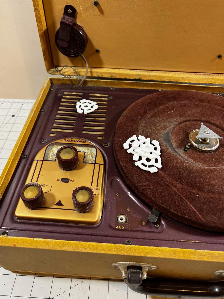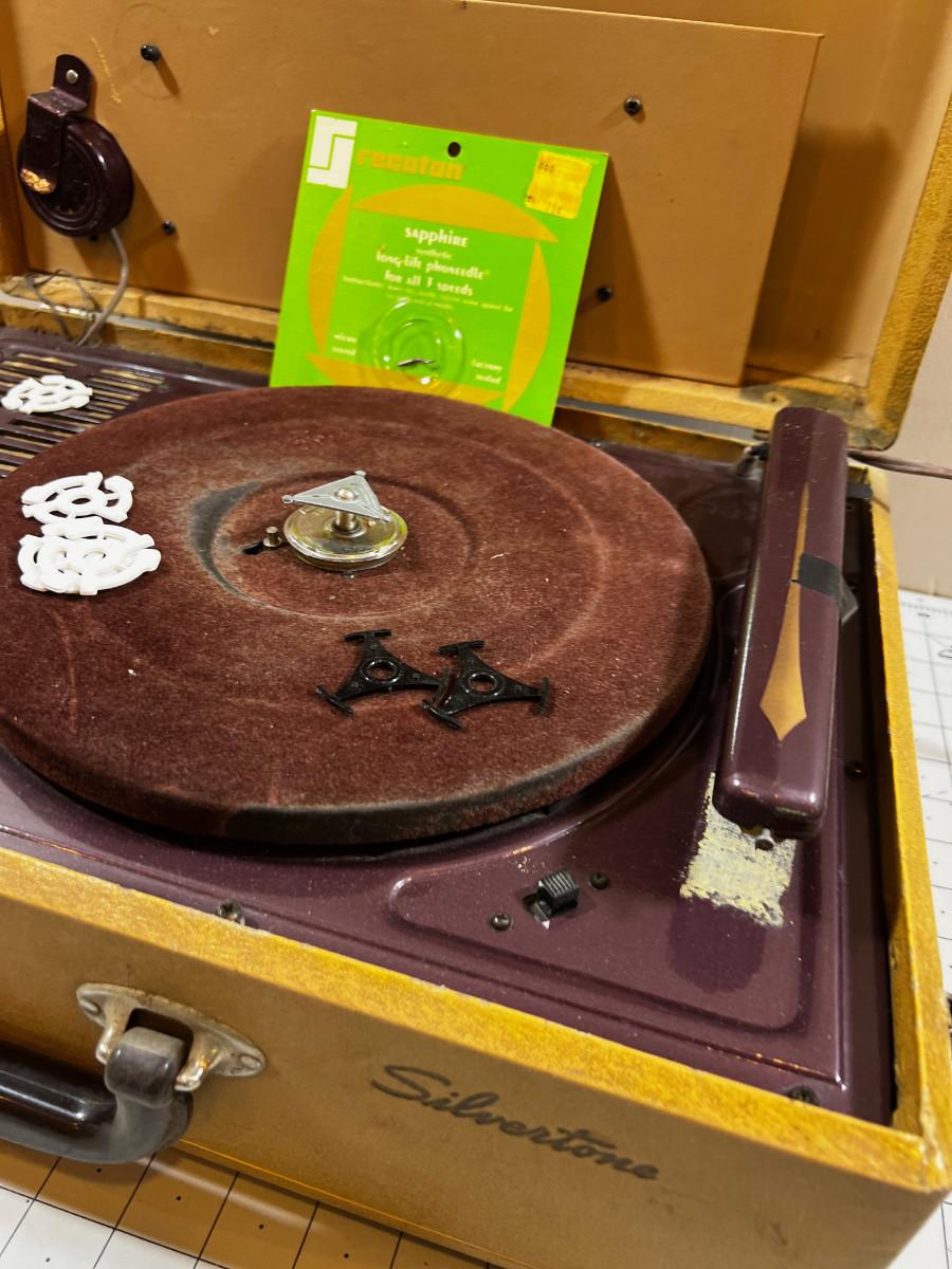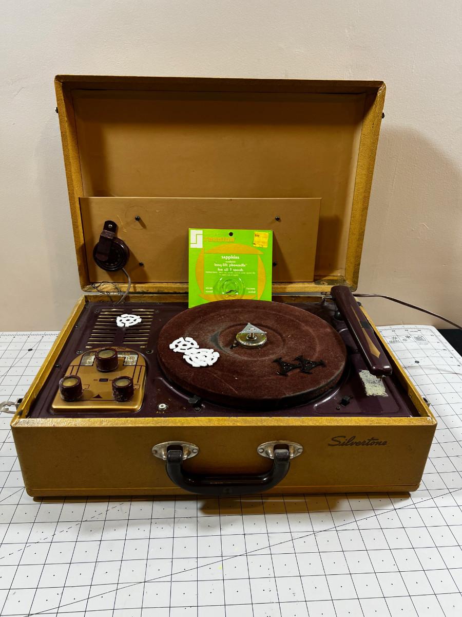 VINTAGE! Awesome!! Has a "Mic and a Record" Button sooo? It must record. But not sure how? Table turns and a little bit of sound. Powers up.