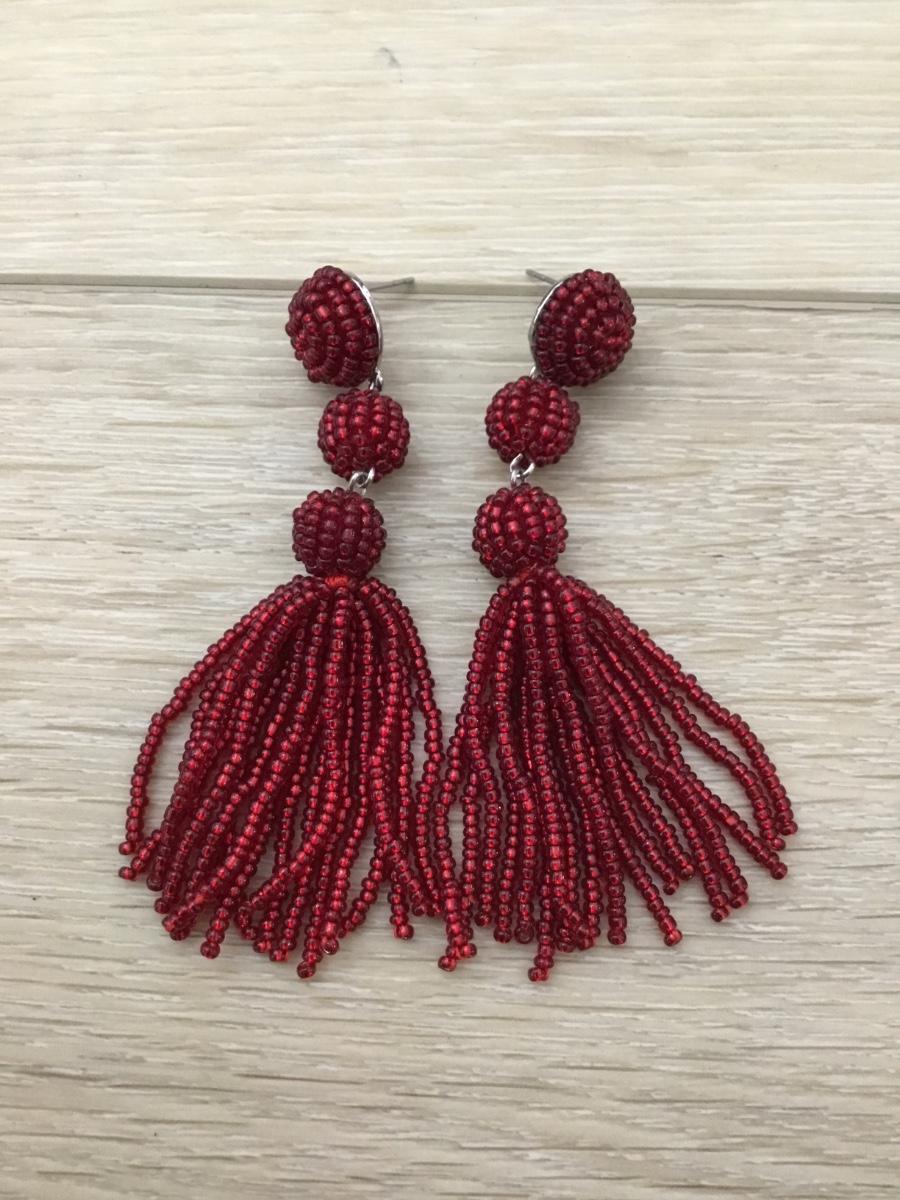 Silver tone red beaded dangle earrings