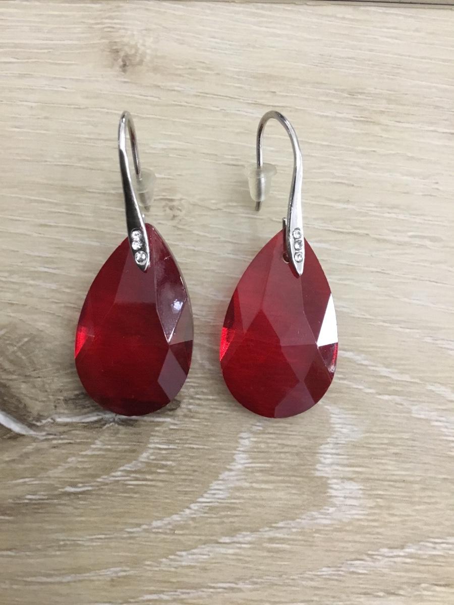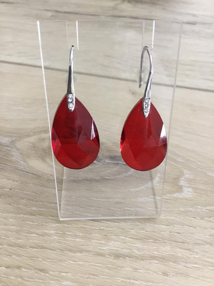 Silver tone & red crystal statement earrings