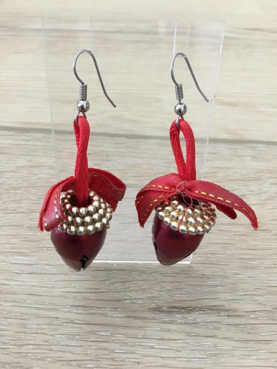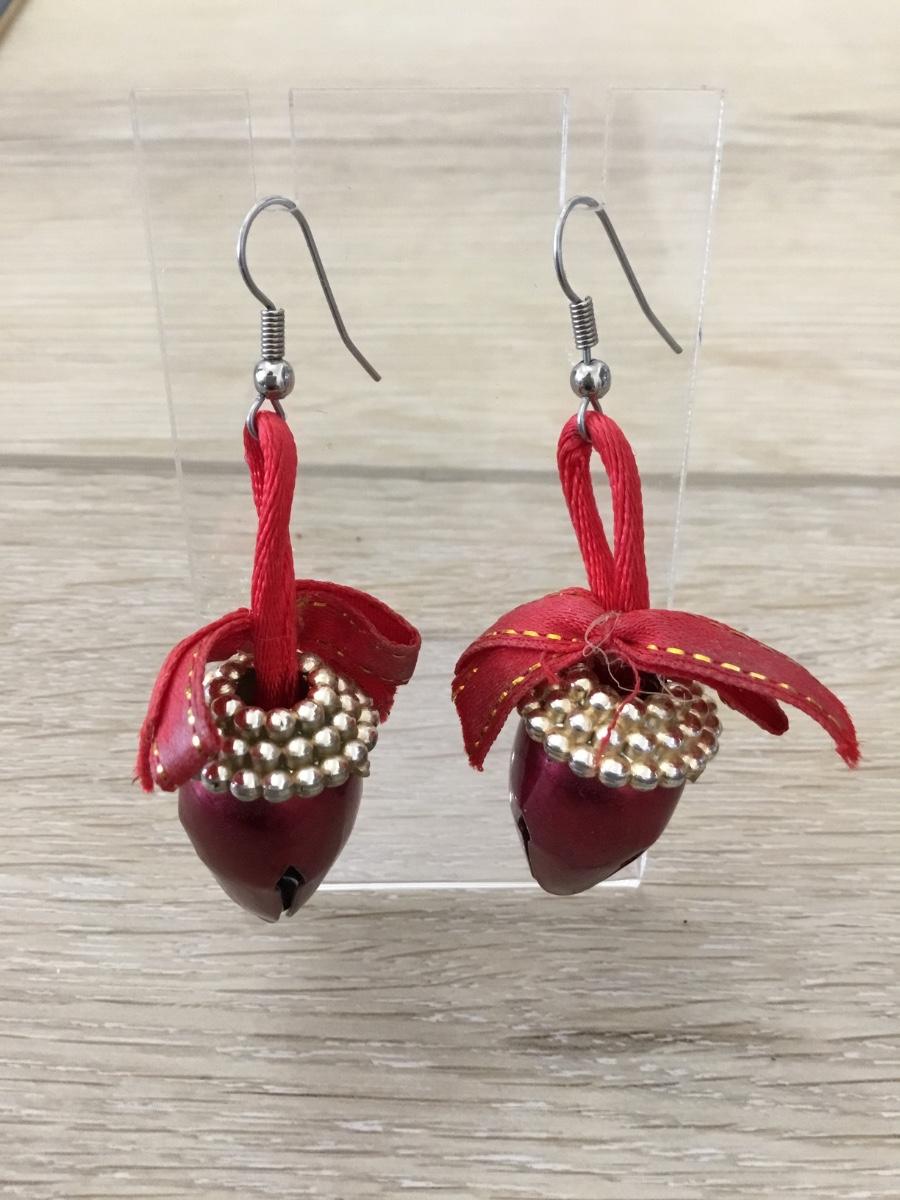 Silver tone red ornaments earrings