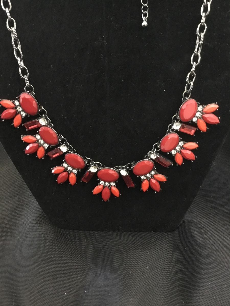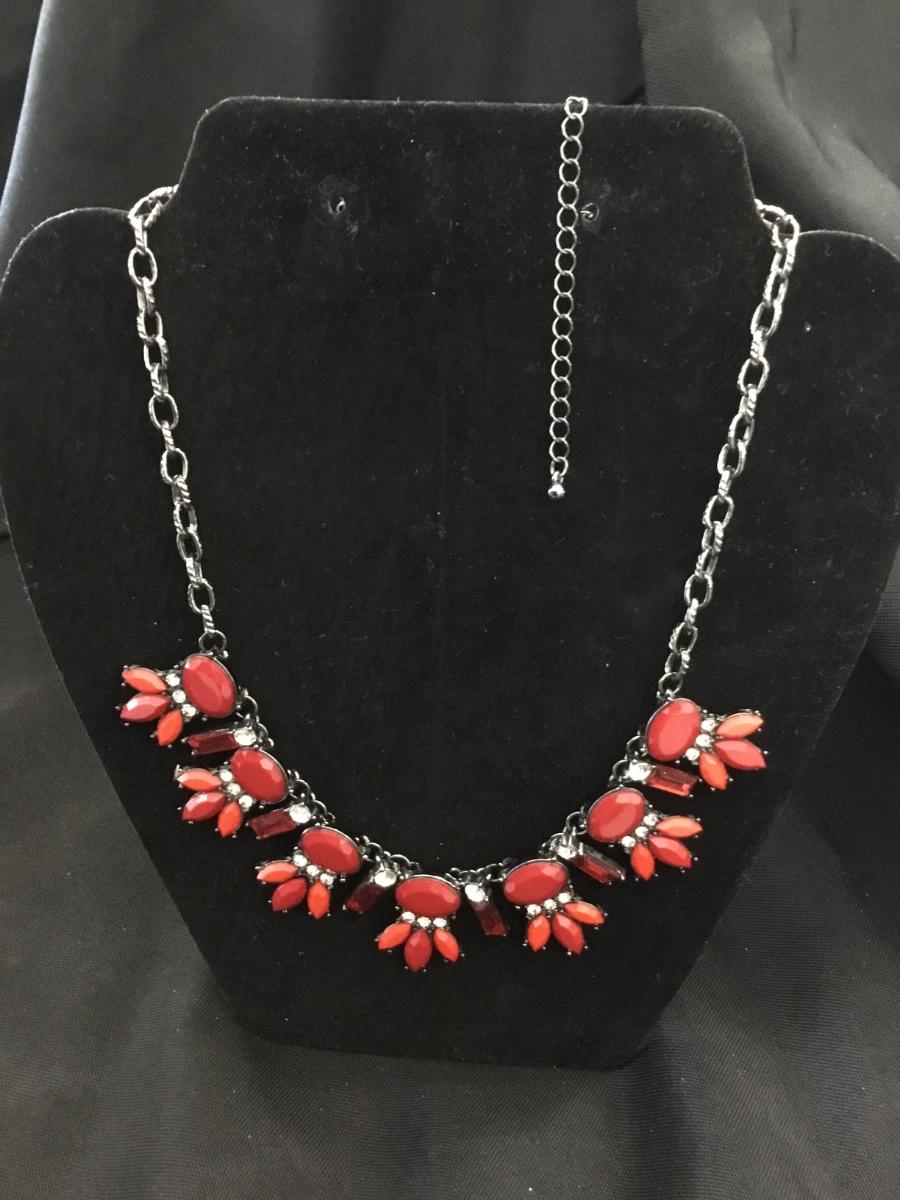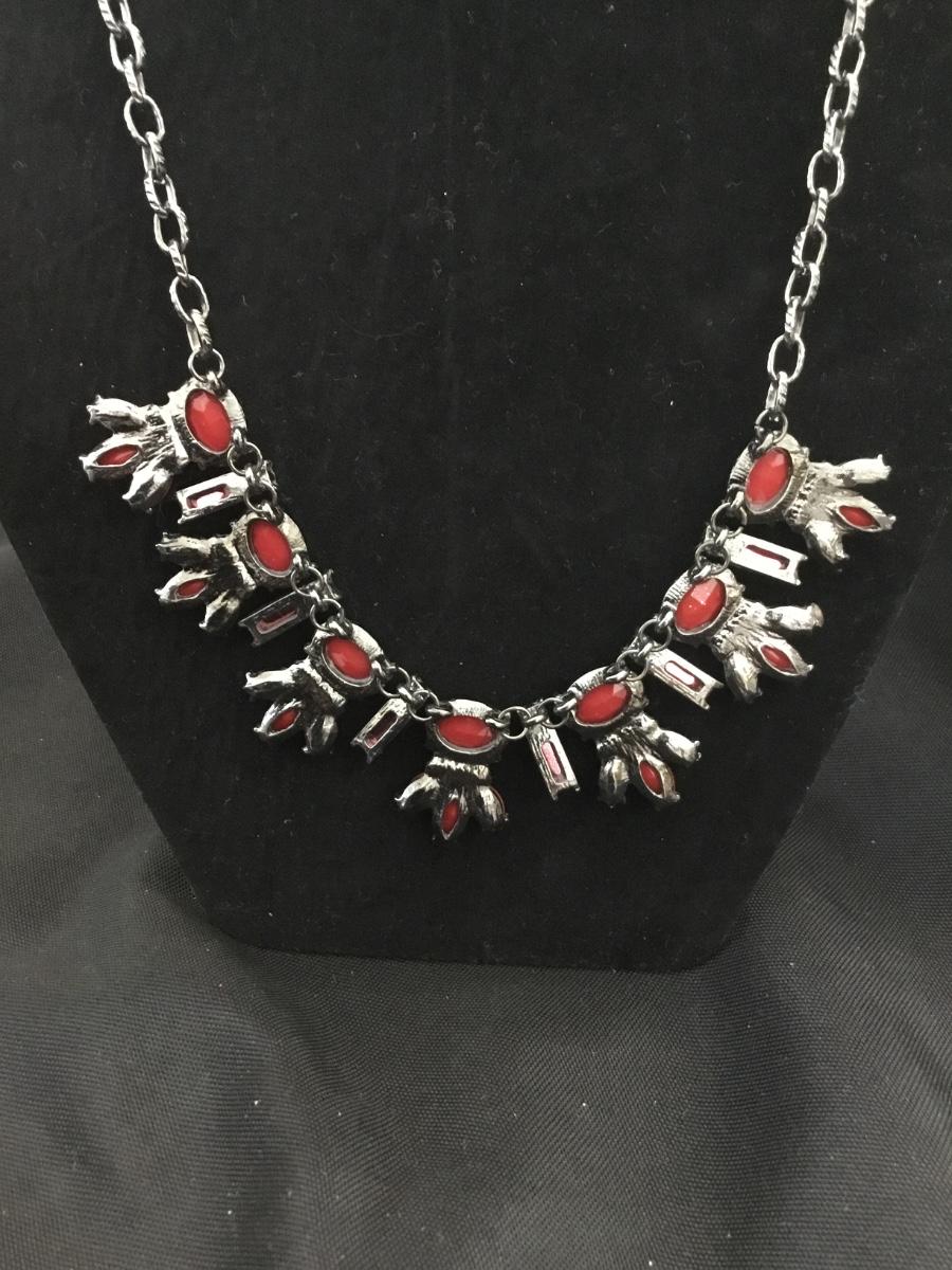 Silver tone red statement necklace