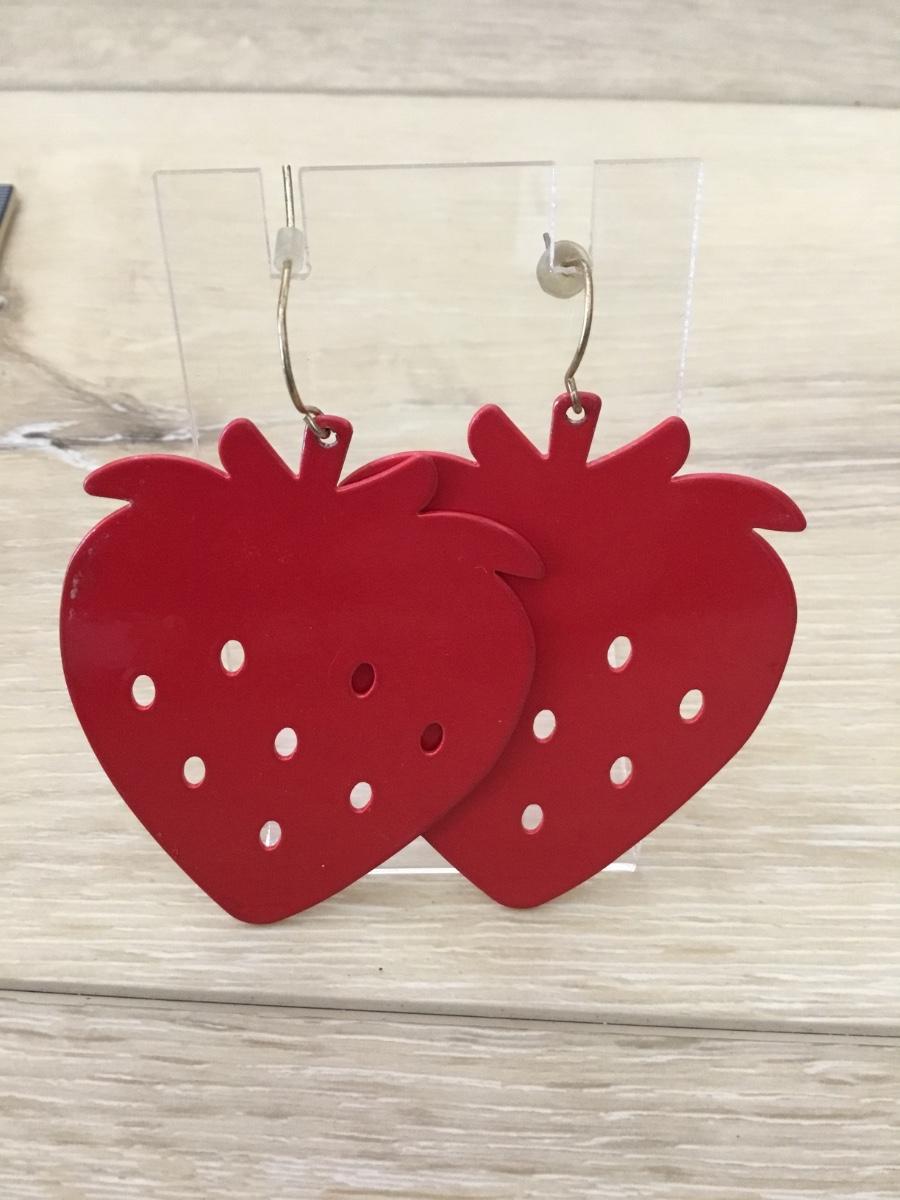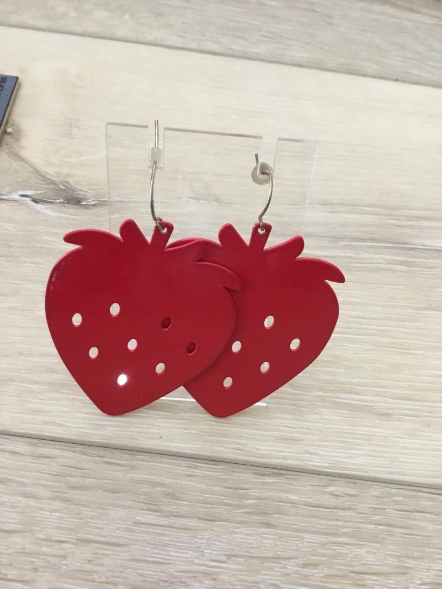 Silver tone red strawberry earrings