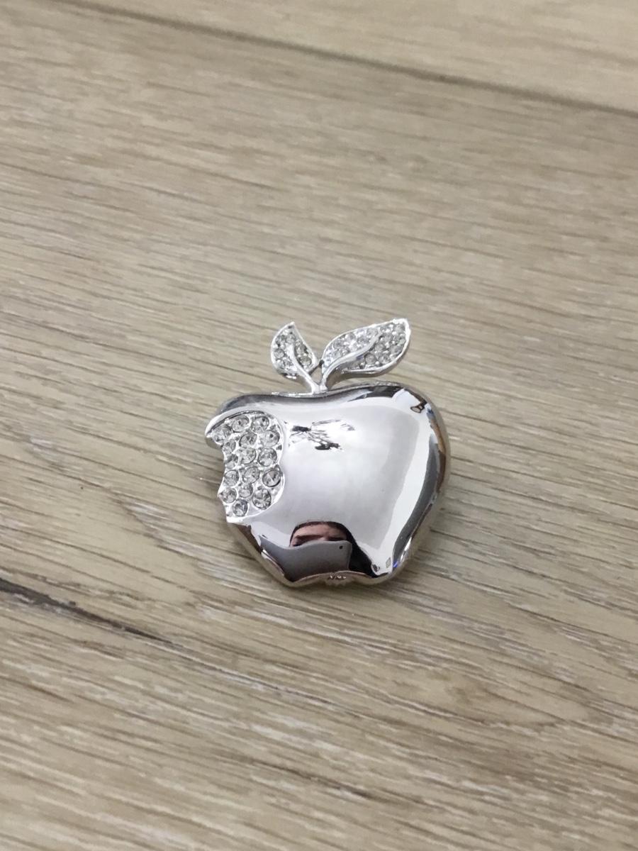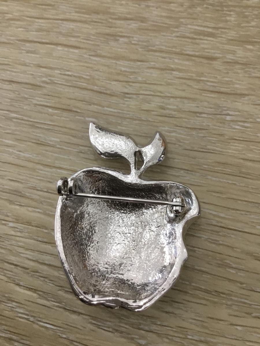 Silver tone rhinestone apple pin