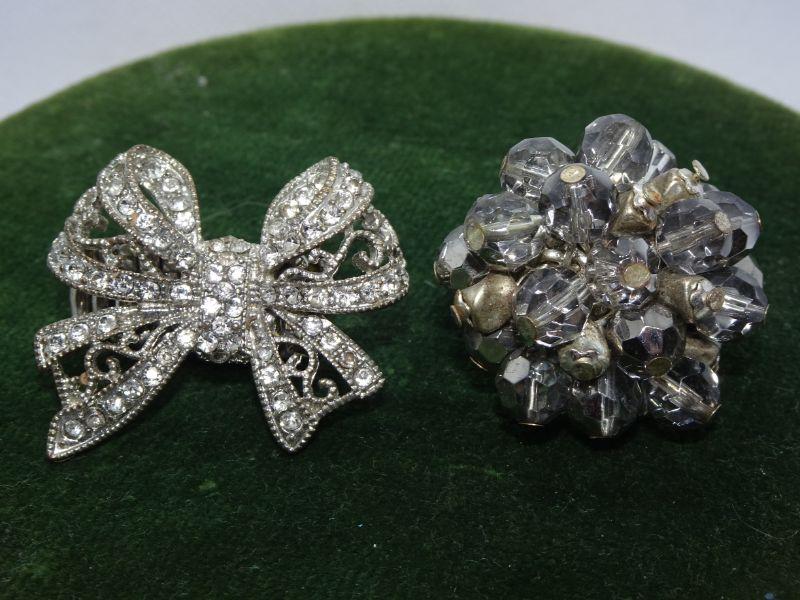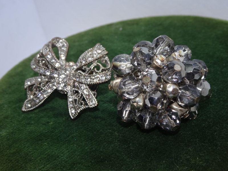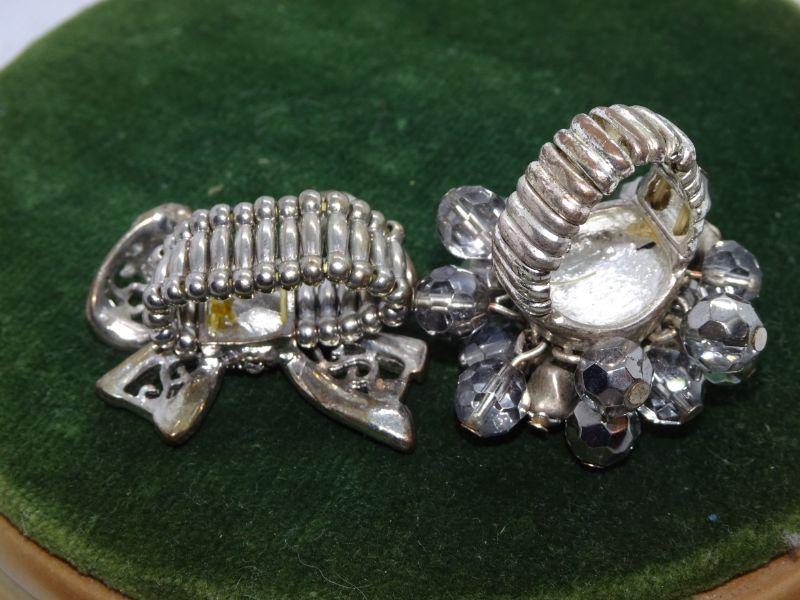 Silver Tone Rhinestone & Beaded Stretch Rings (2) Victorian Style Rhinestone Bow