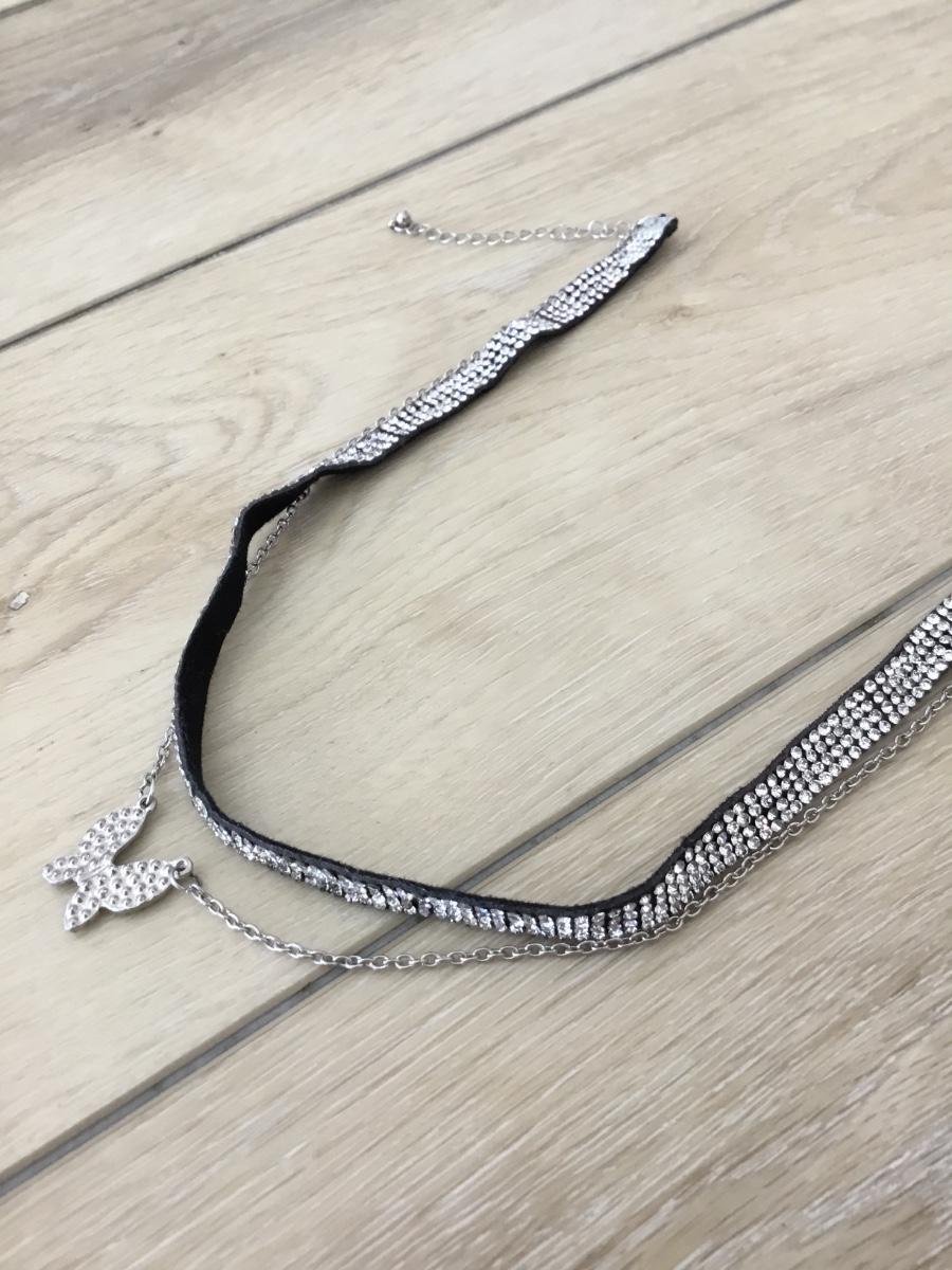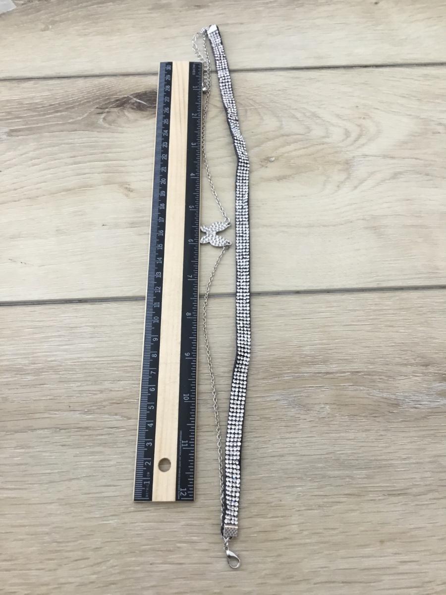Silver tone rhinestone butterfly choker