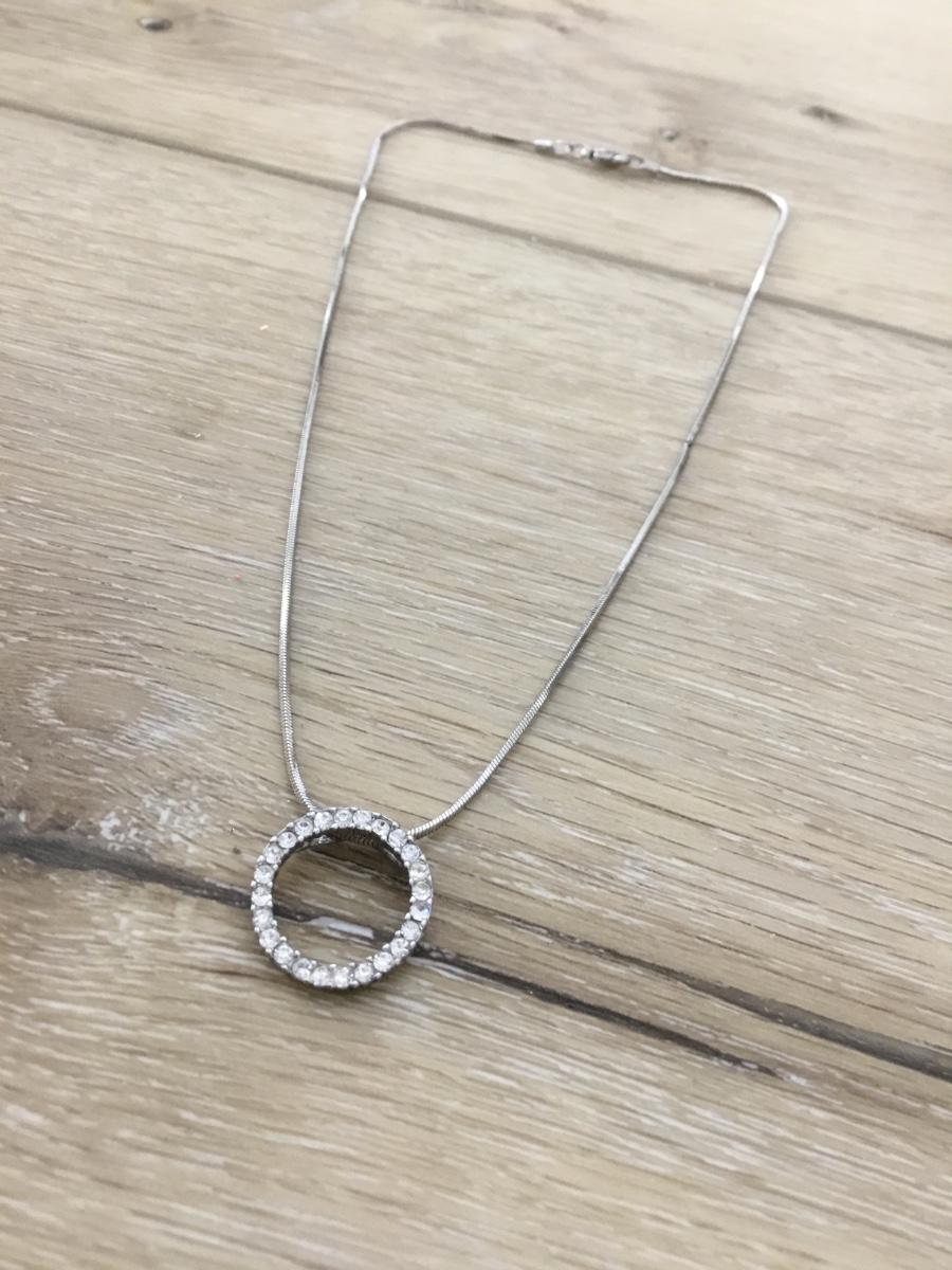Silver tone rhinestone charm necklace