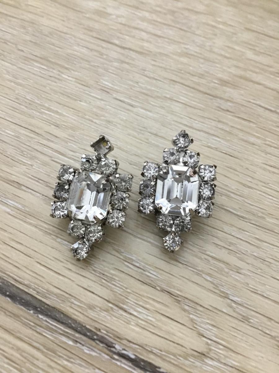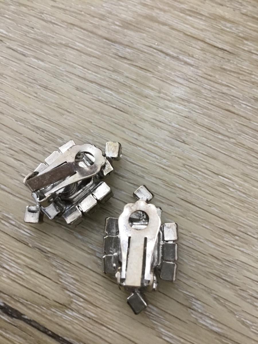 Silver tone rhinestone clip on earrings vintage