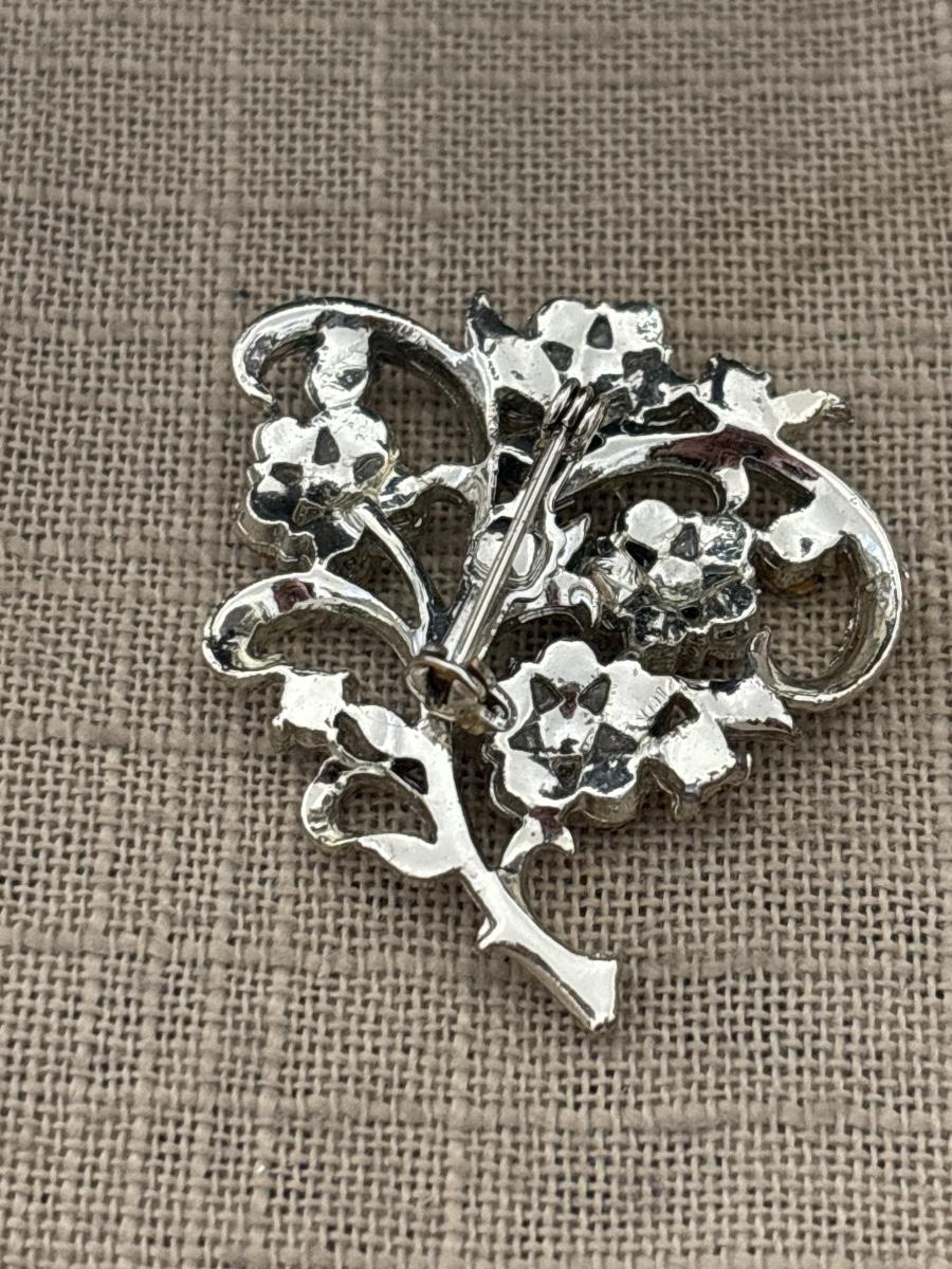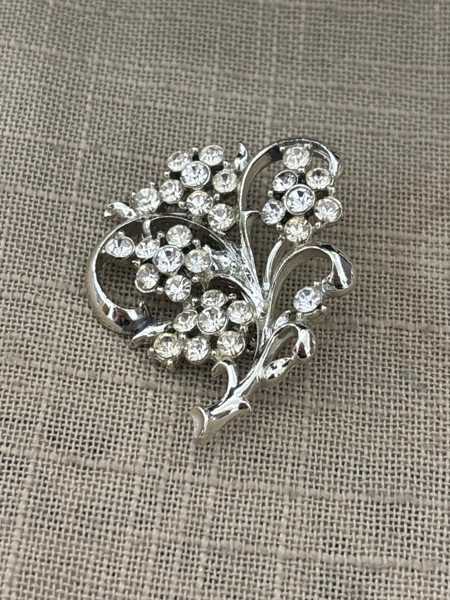 Silver tone rhinestone flower brooch