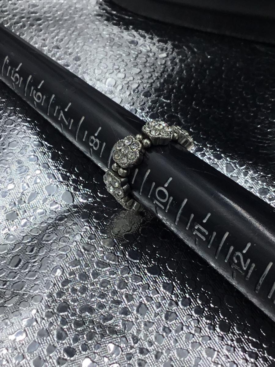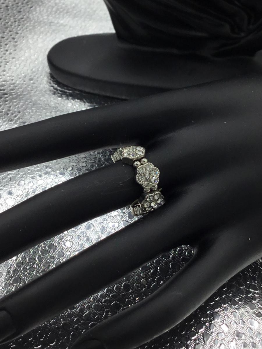 Silver tone rhinestone flowers stretchy adjustable ring