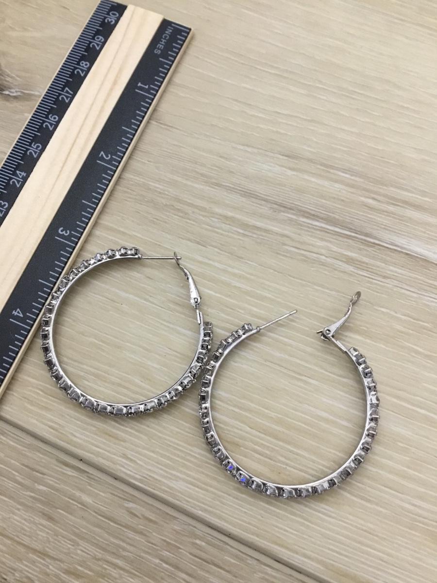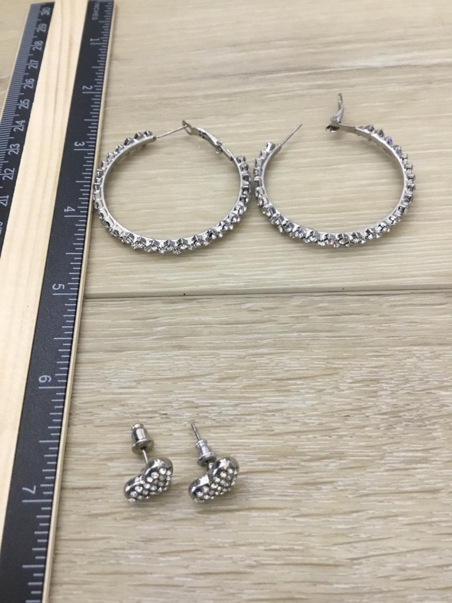 Silver tone rhinestone heart and hoop earrings