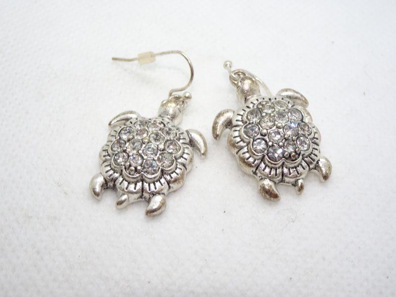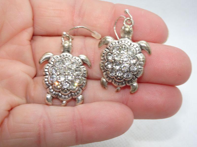 Silver Tone Rhinestone Hook Earrings