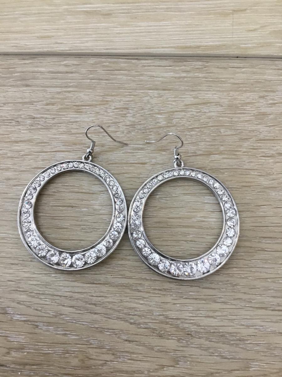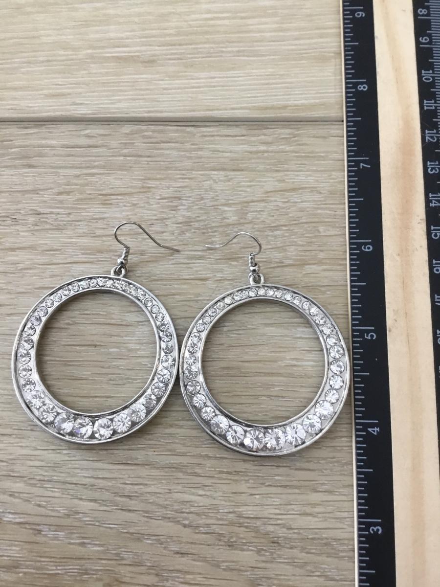 Silver tone rhinestone hoop earrings