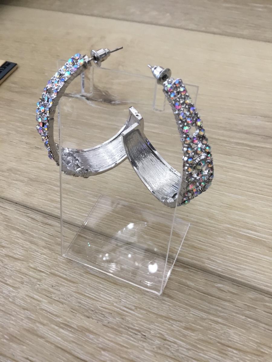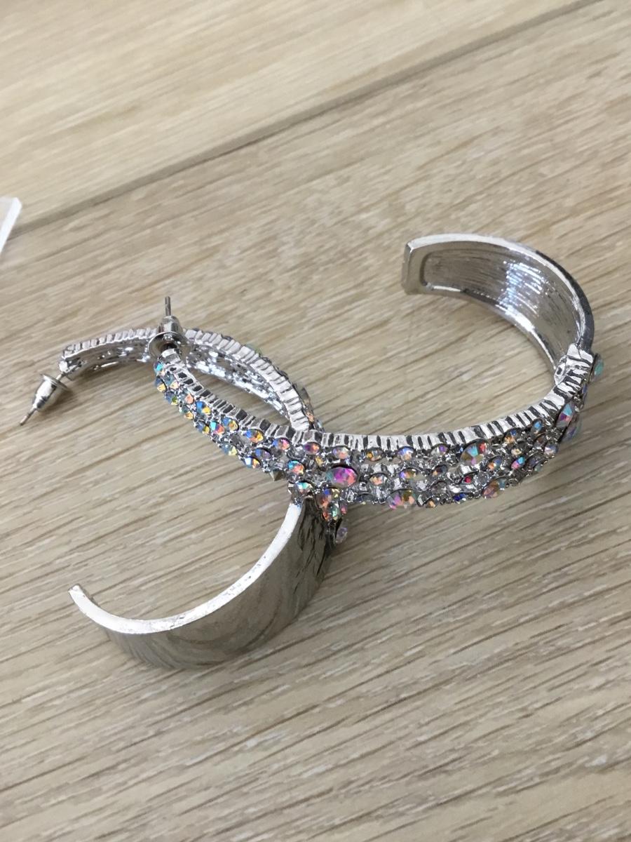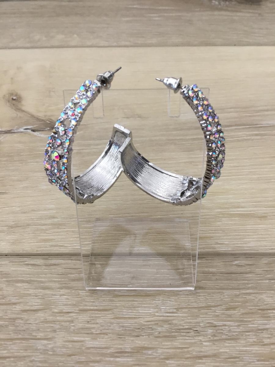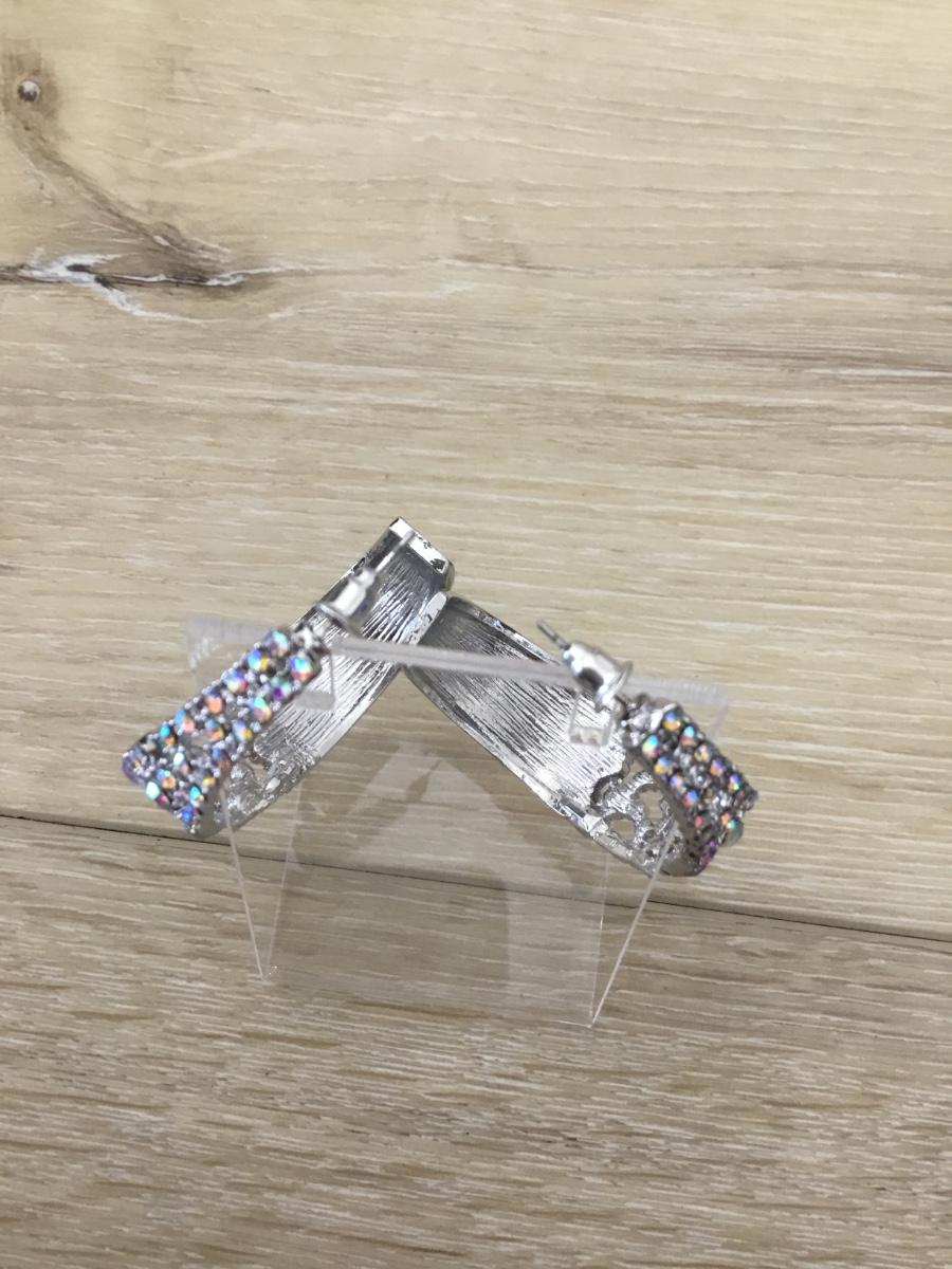 Silver tone rhinestone hoop earrings