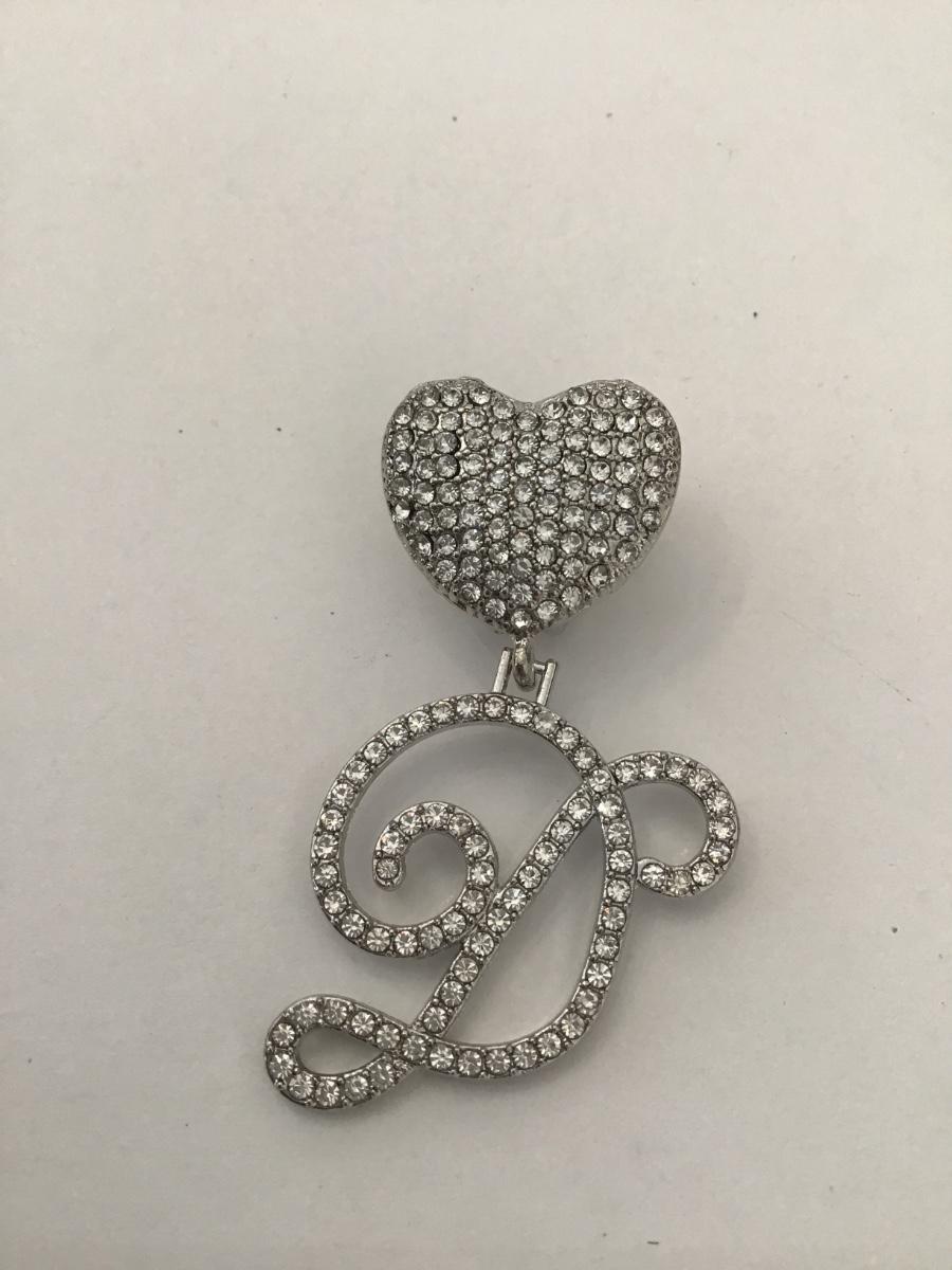 Silver tone rhinestone monogram pendant