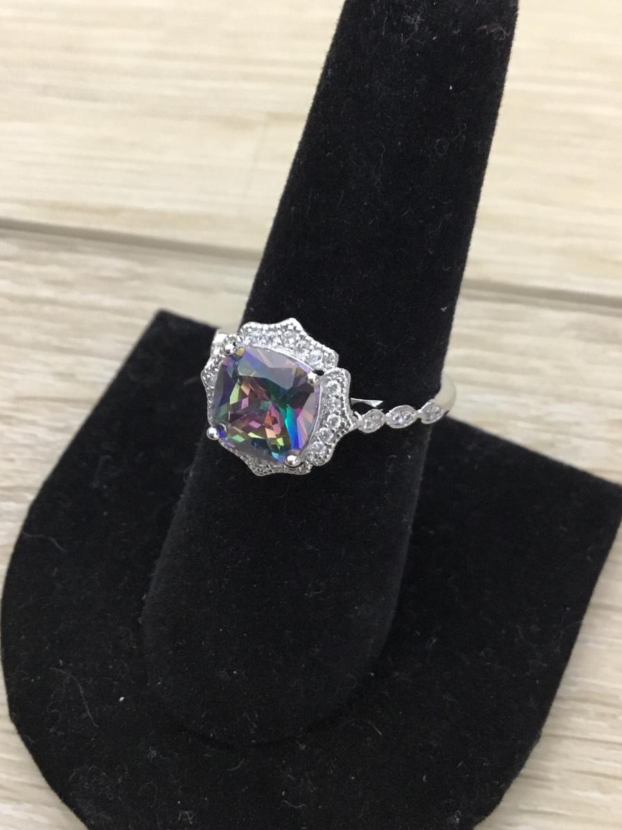 Silver tone rhinestone ring