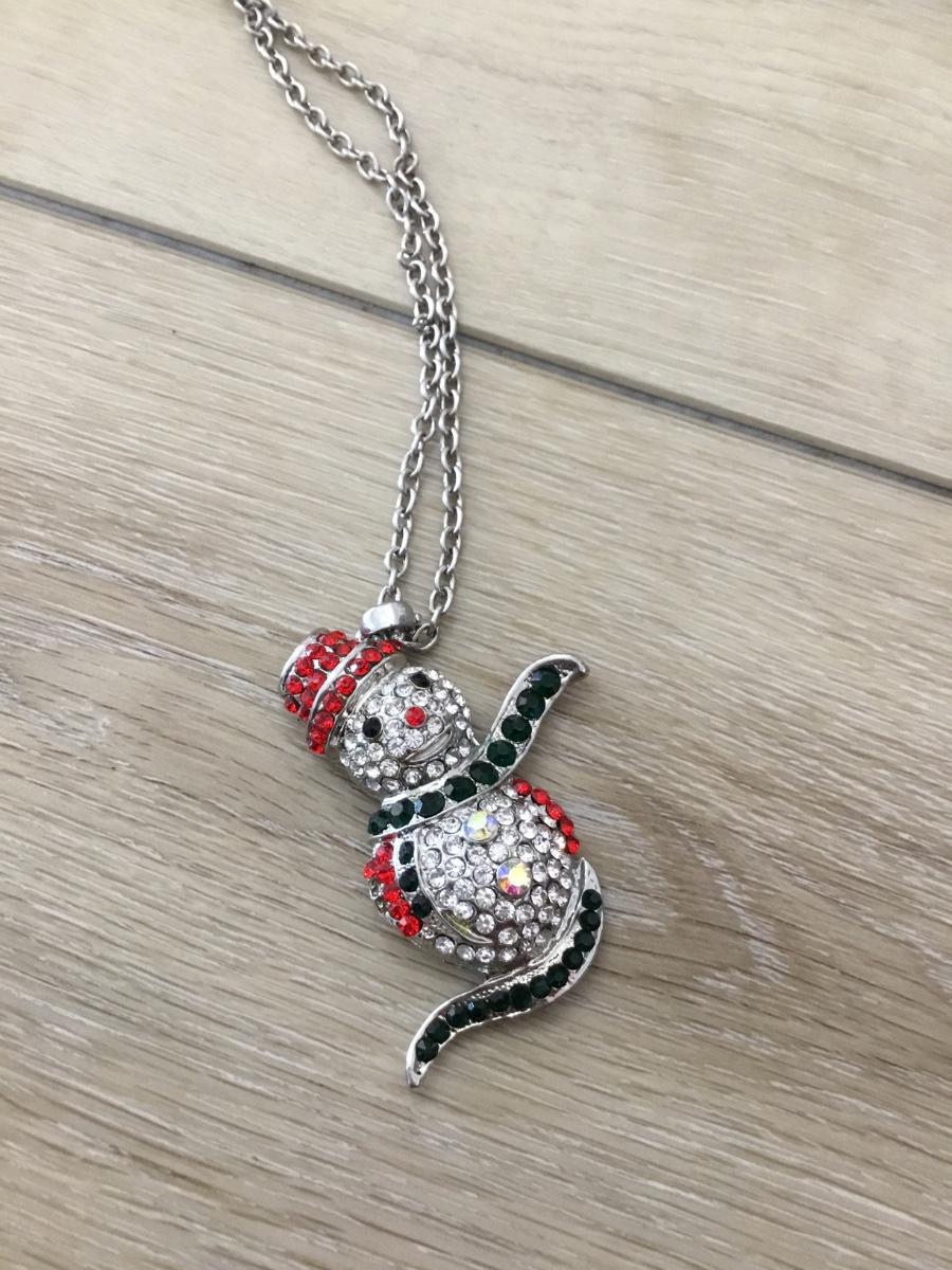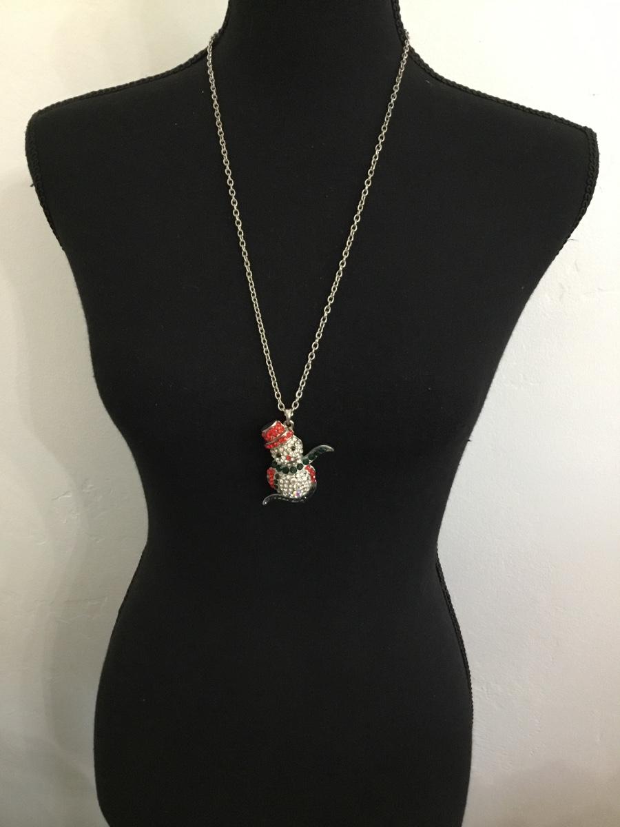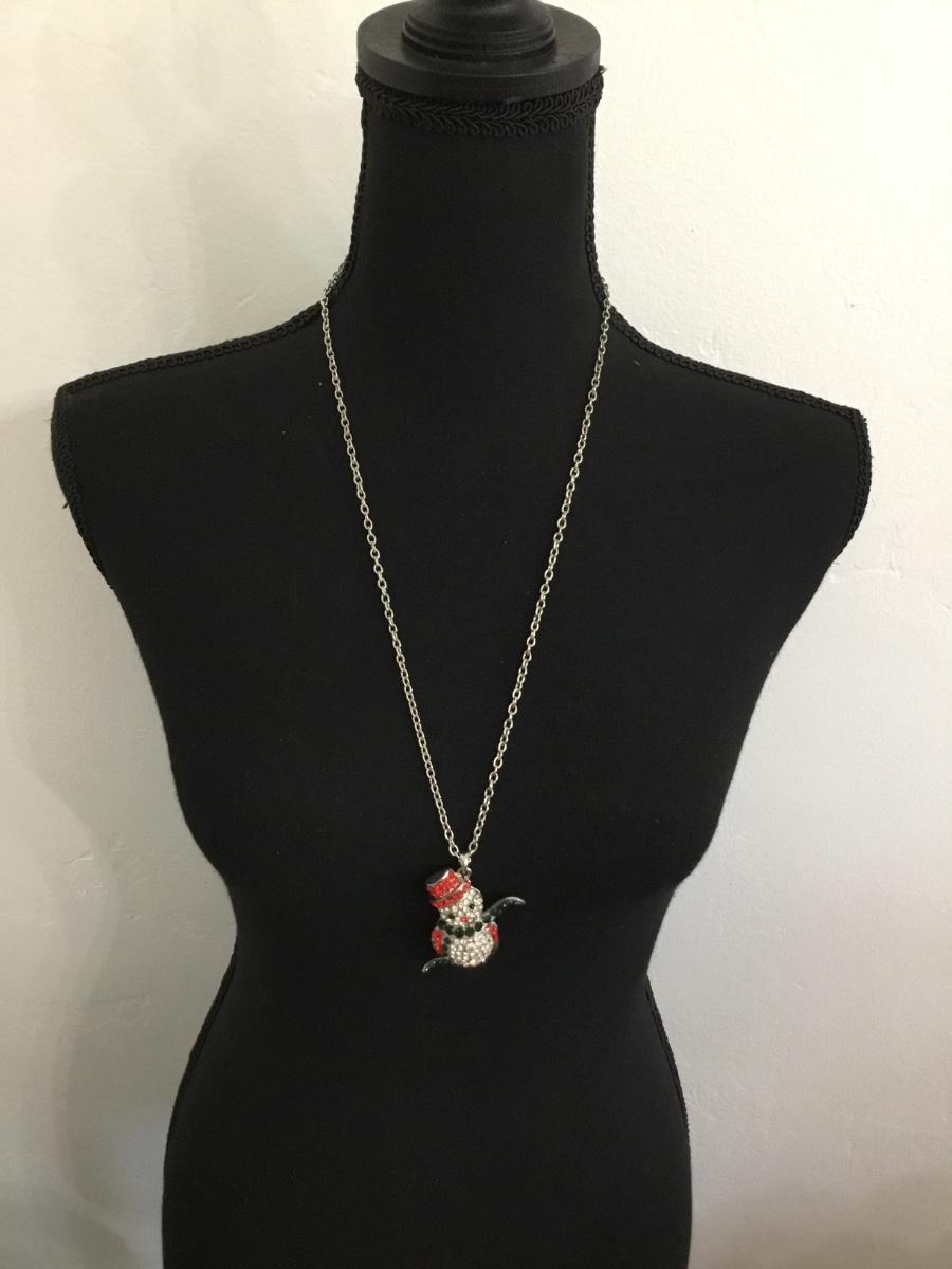 Silver tone rhinestone snowman necklace
