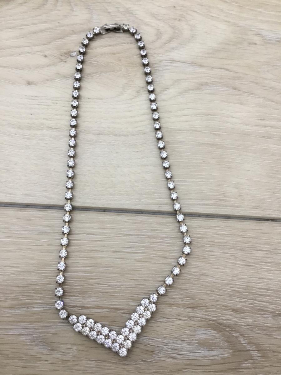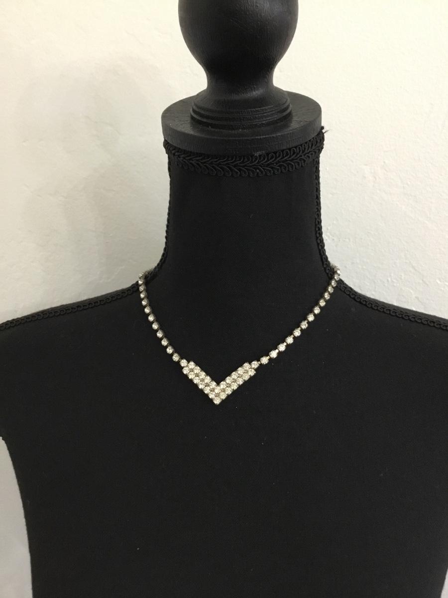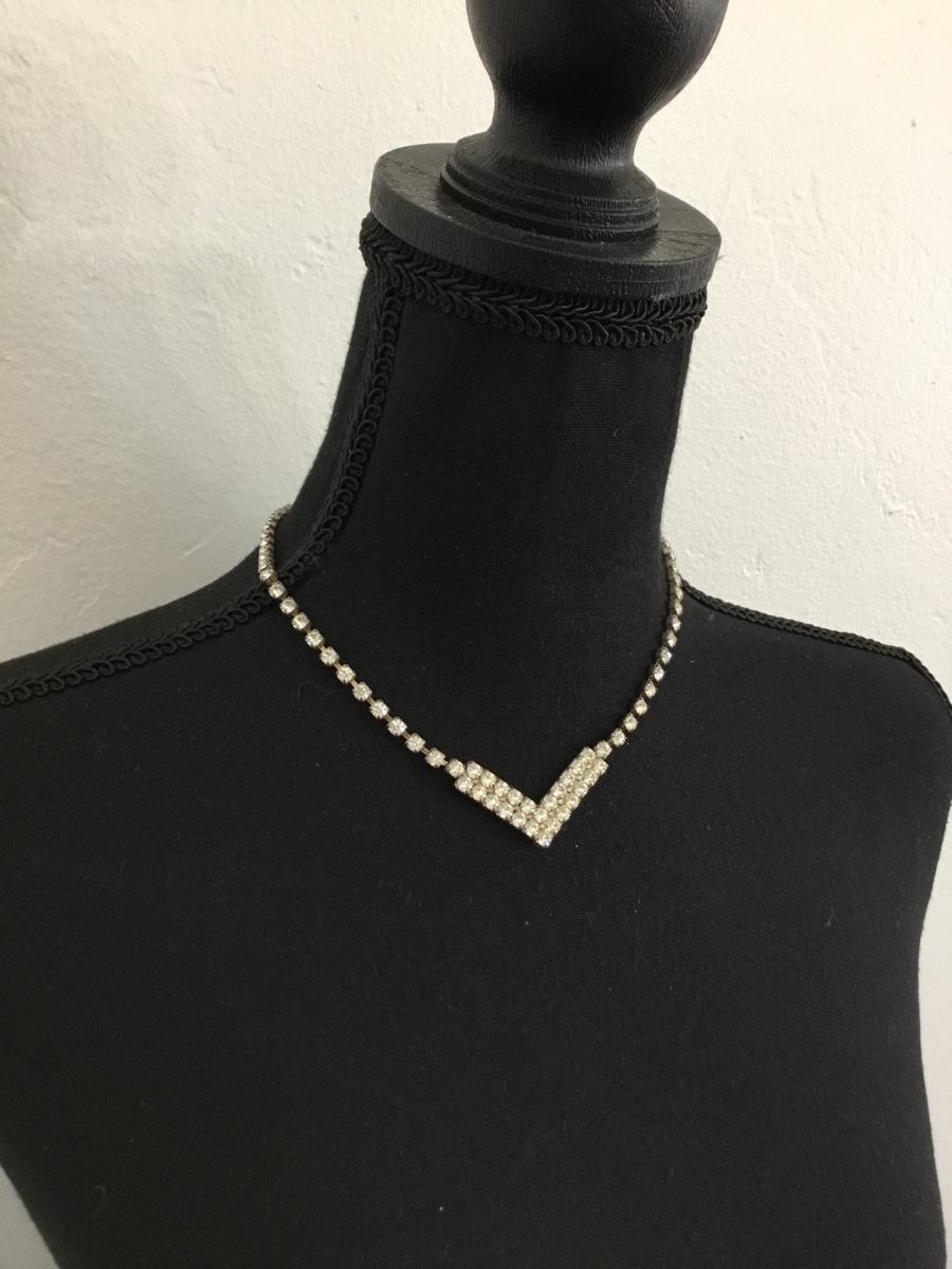 Silver tone rhinestone vintage clasp necklace