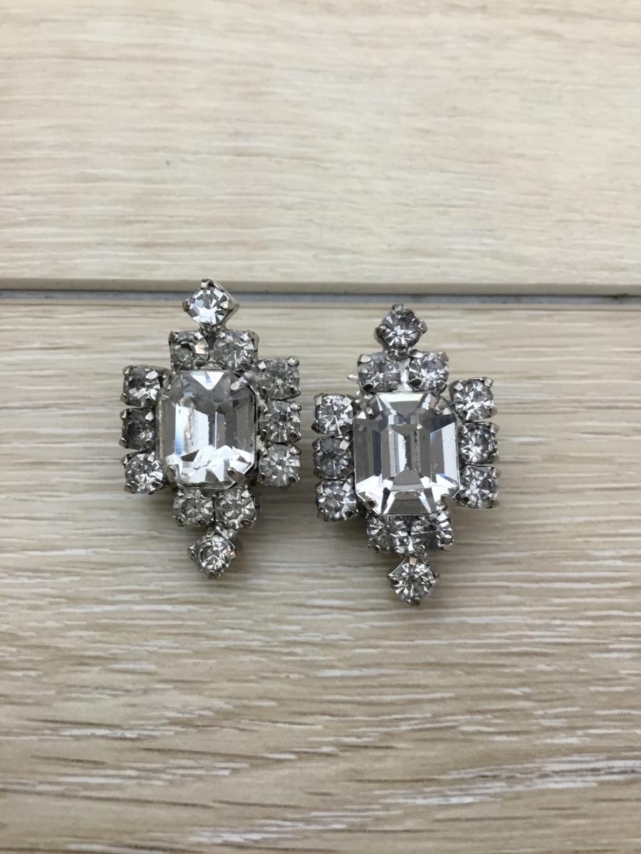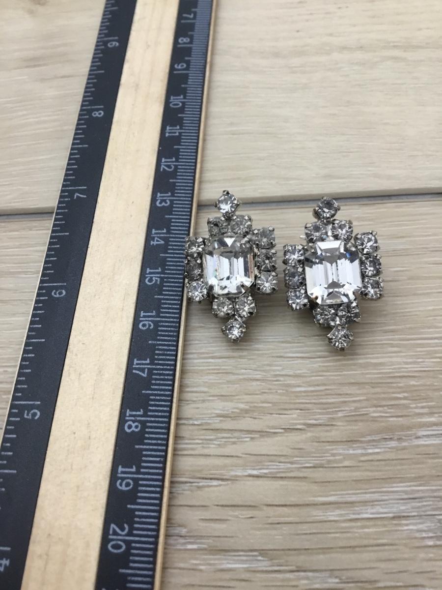 Silver tone rhinestone vintage clip on earrings