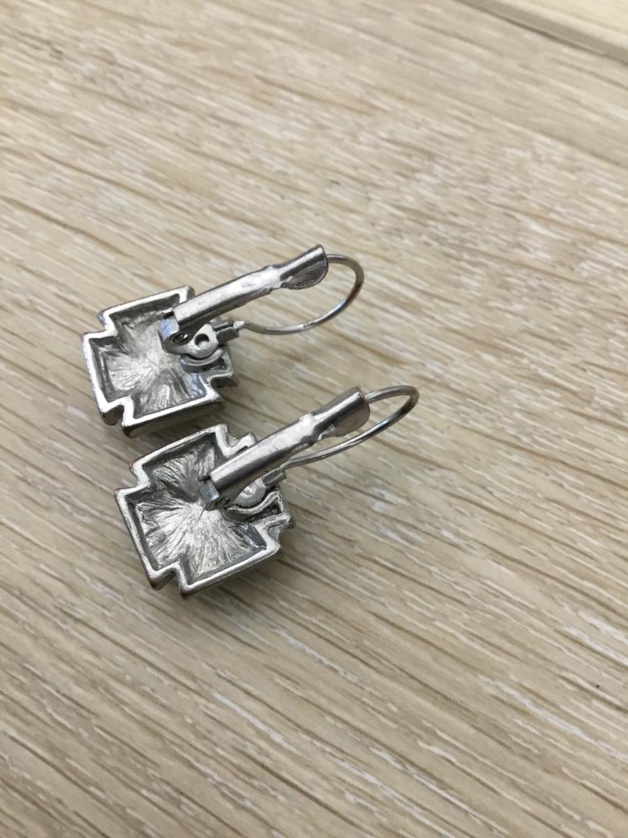 Silver tone rhinestone vintage earrings