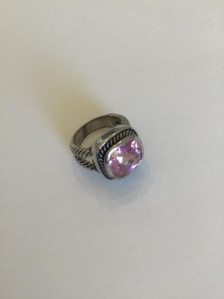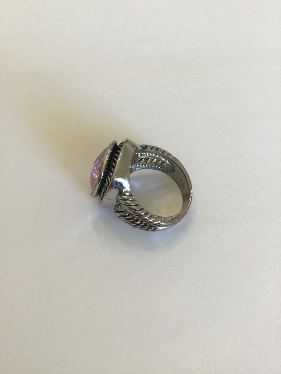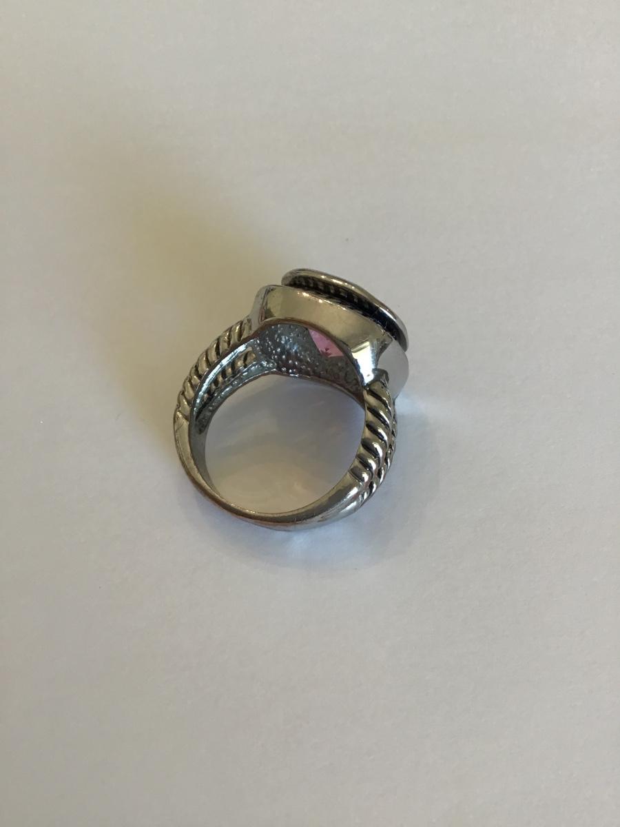 Silver tone ring with pink Rhinestone