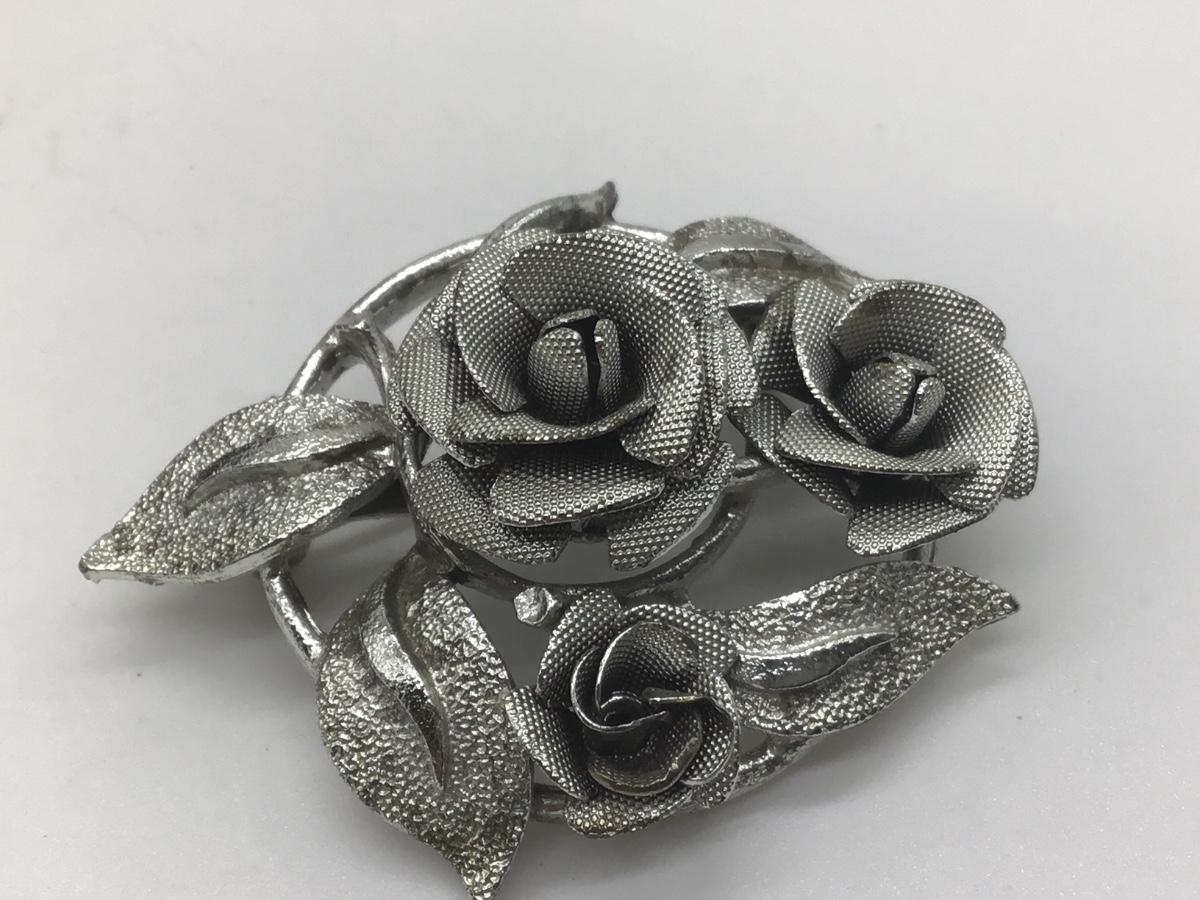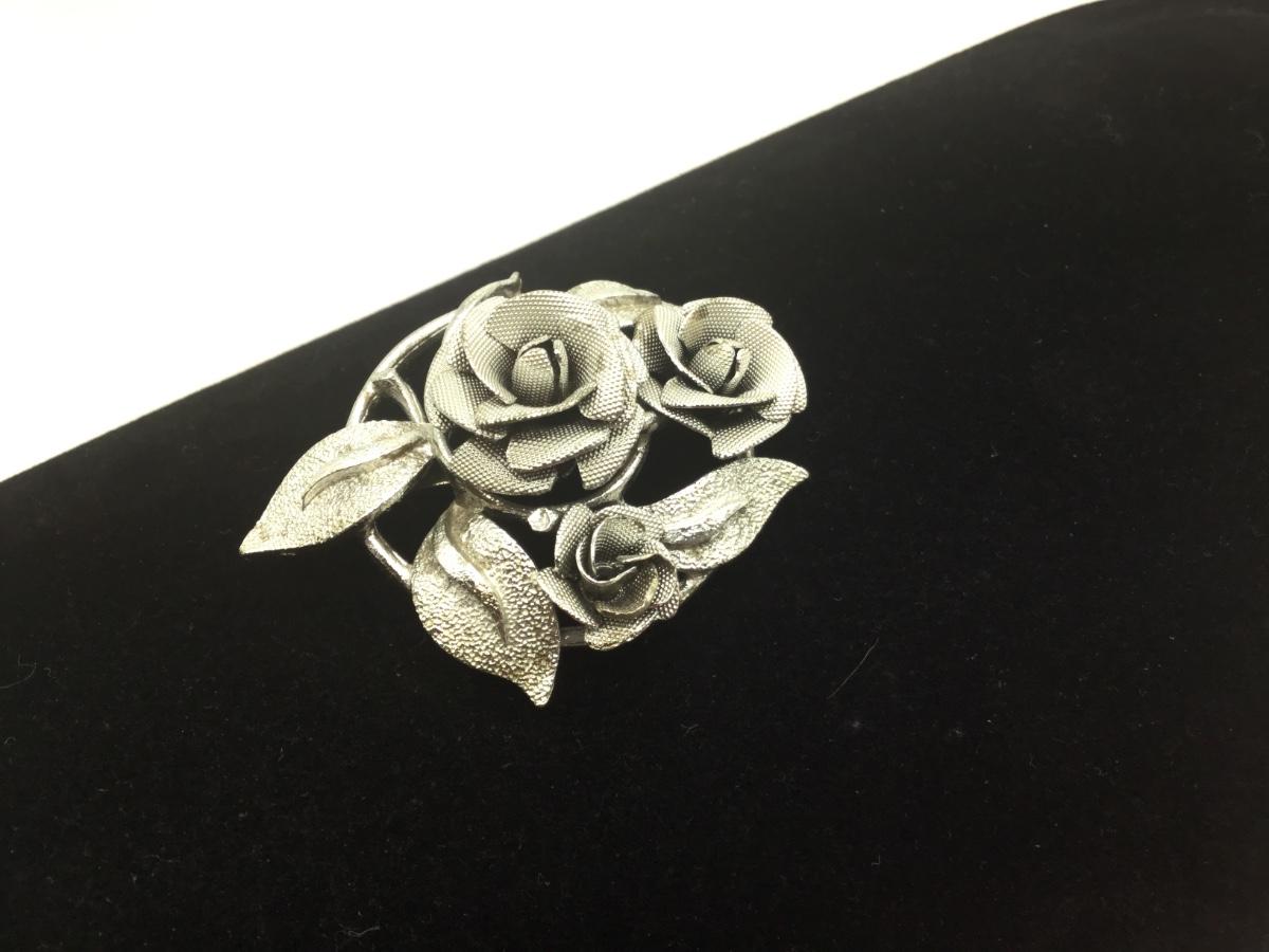 Silver Tone Rose Brooch