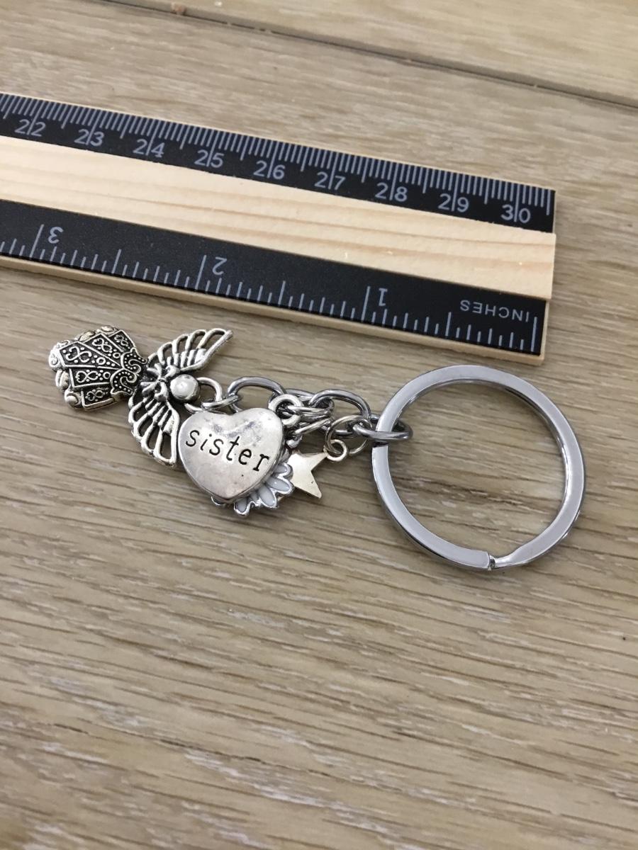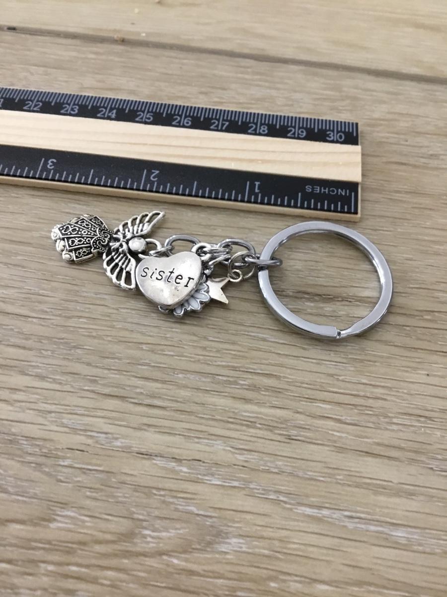 Silver tone sister keychain charms