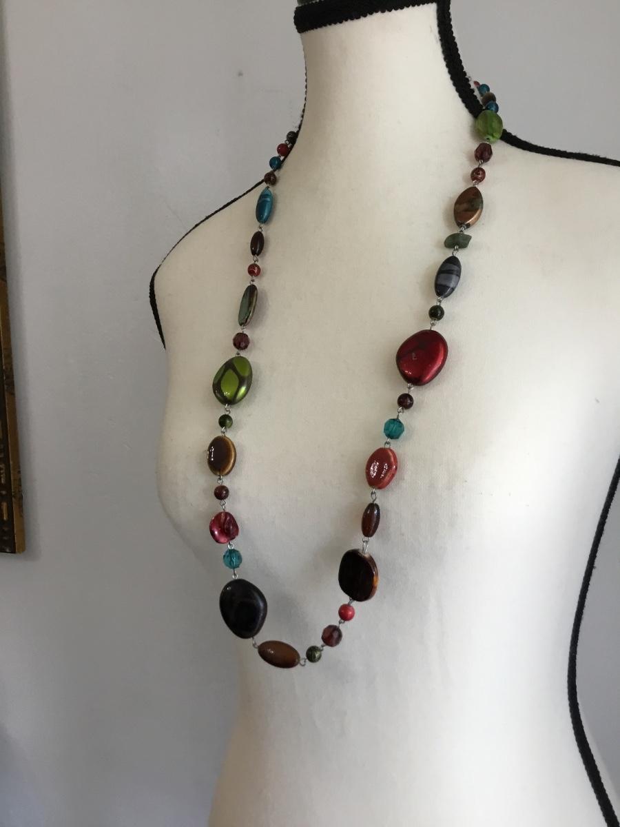 Silver tone stone type beaded necklace