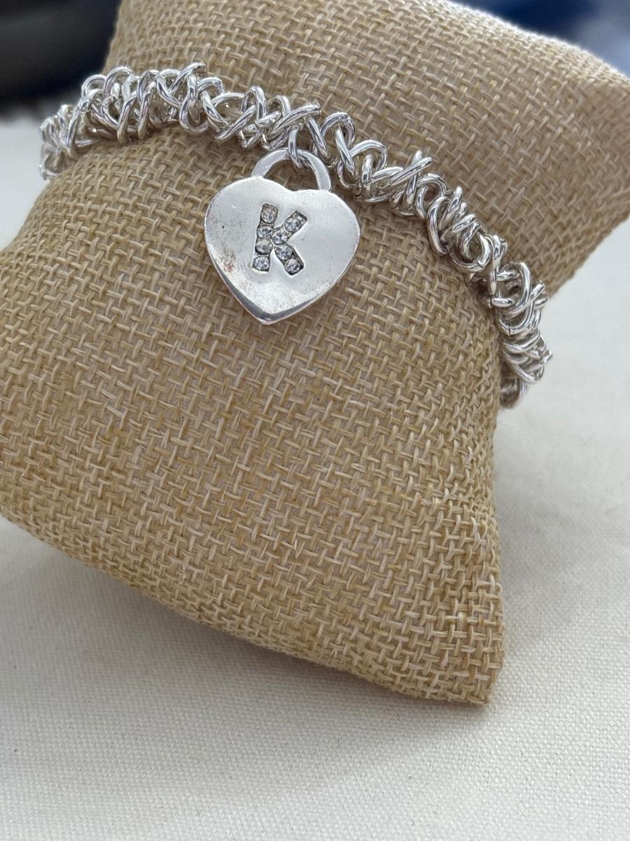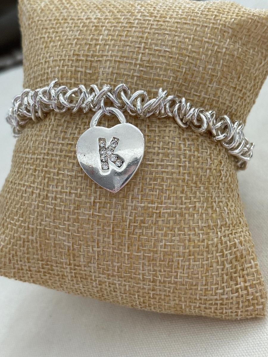 Silver tone stretchy bracelet with heart charm
